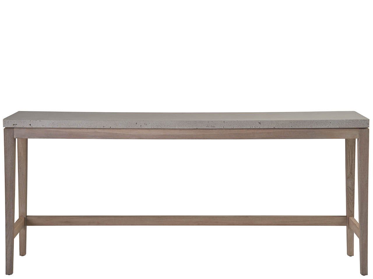 Unwind with friends and family around the Saratoga Conversation Console. This high-top table, crafted with a warm weathered teak finish and cast concrete accents, creates a stylish and practical hub for outdoor entertaining.