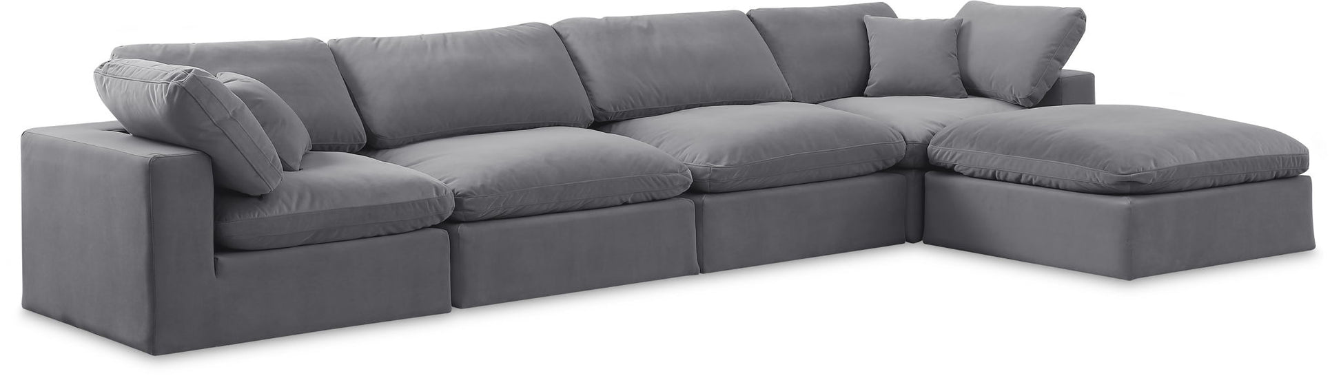 Comfy - 5 Piece Velvet Modular Sectional With Chaise - Dark Gray
