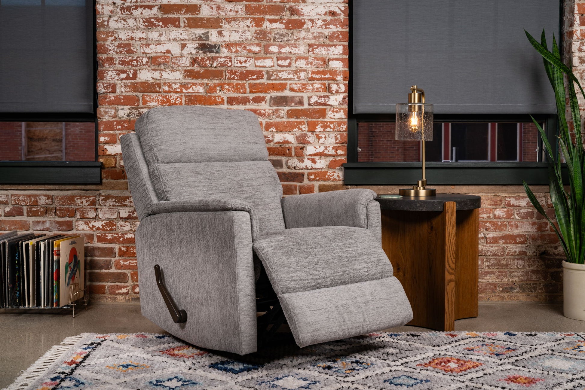 Need something smaller to fit into any space? Meet the Compact Gliding Recliner. The petite scale makes this piece the perfect fit for even the most compact lifestyles. With the smoothest gliding recline controlled by a classic handle-activated system and the durability of our trademark DualFlex Spring System, this recliner is simplicity meets innovation. Everything you need, in a compact package. Your perfect match: The Compact Gliding Recliner.