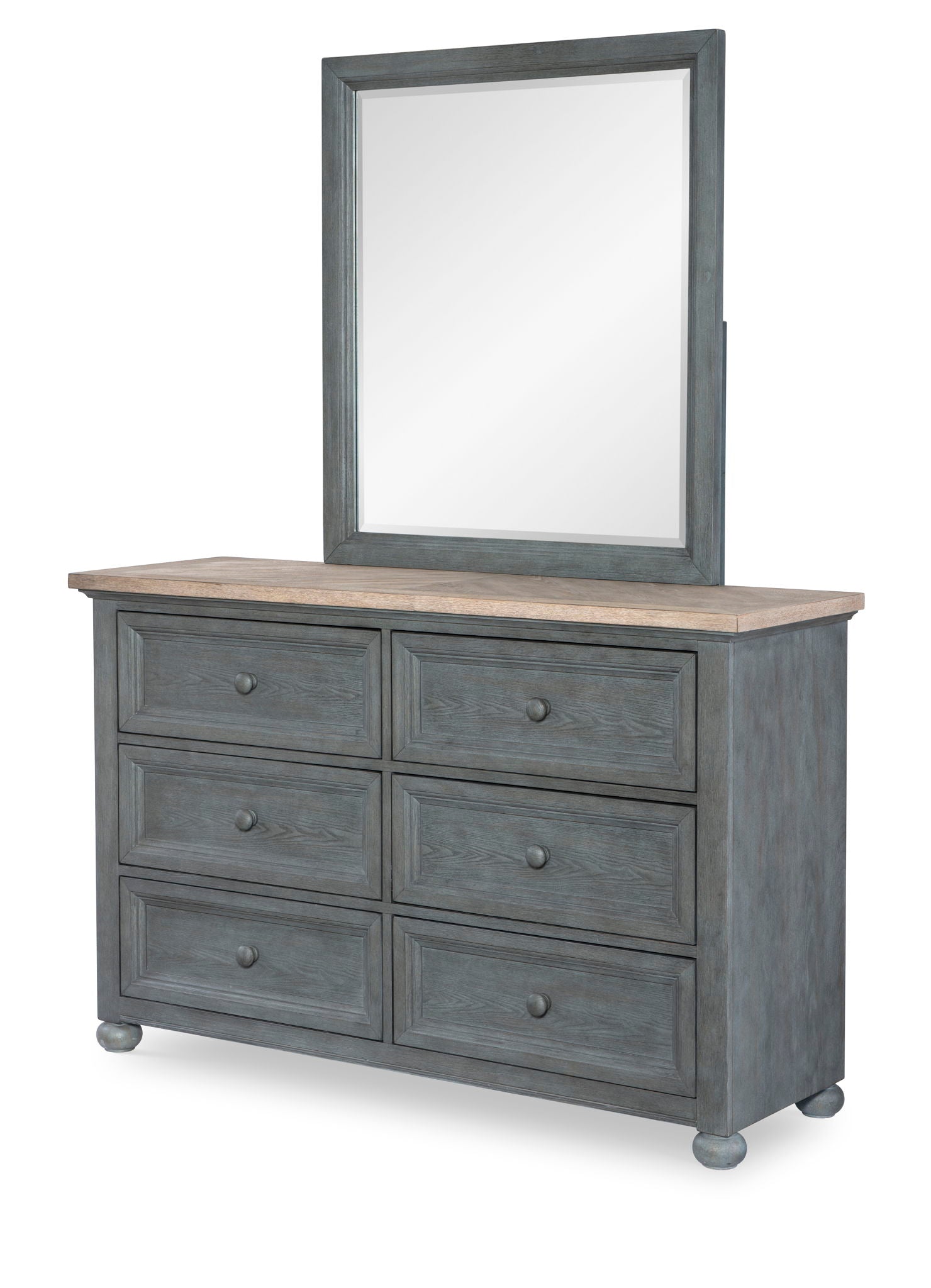 Beautifully crafted and versatile,, Cone Mills is a country inspired bedroom collection offering several options for sleep,, study and storage. Rustic finishes,, clean lines,, heavy framed drawer fronts,, ball feet and thick tops combine to create a substantial feel with a cozy and relaxed tone. The Distressed Denim finish on frames and hardware,, along with the Stone Washed tops add subtle contrast and elevates the timeless styling.