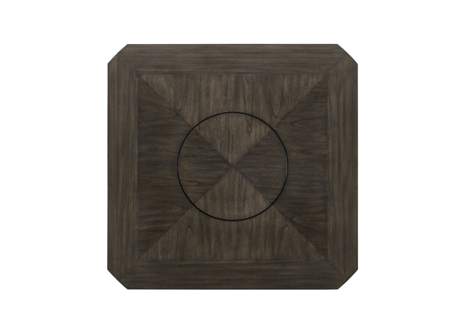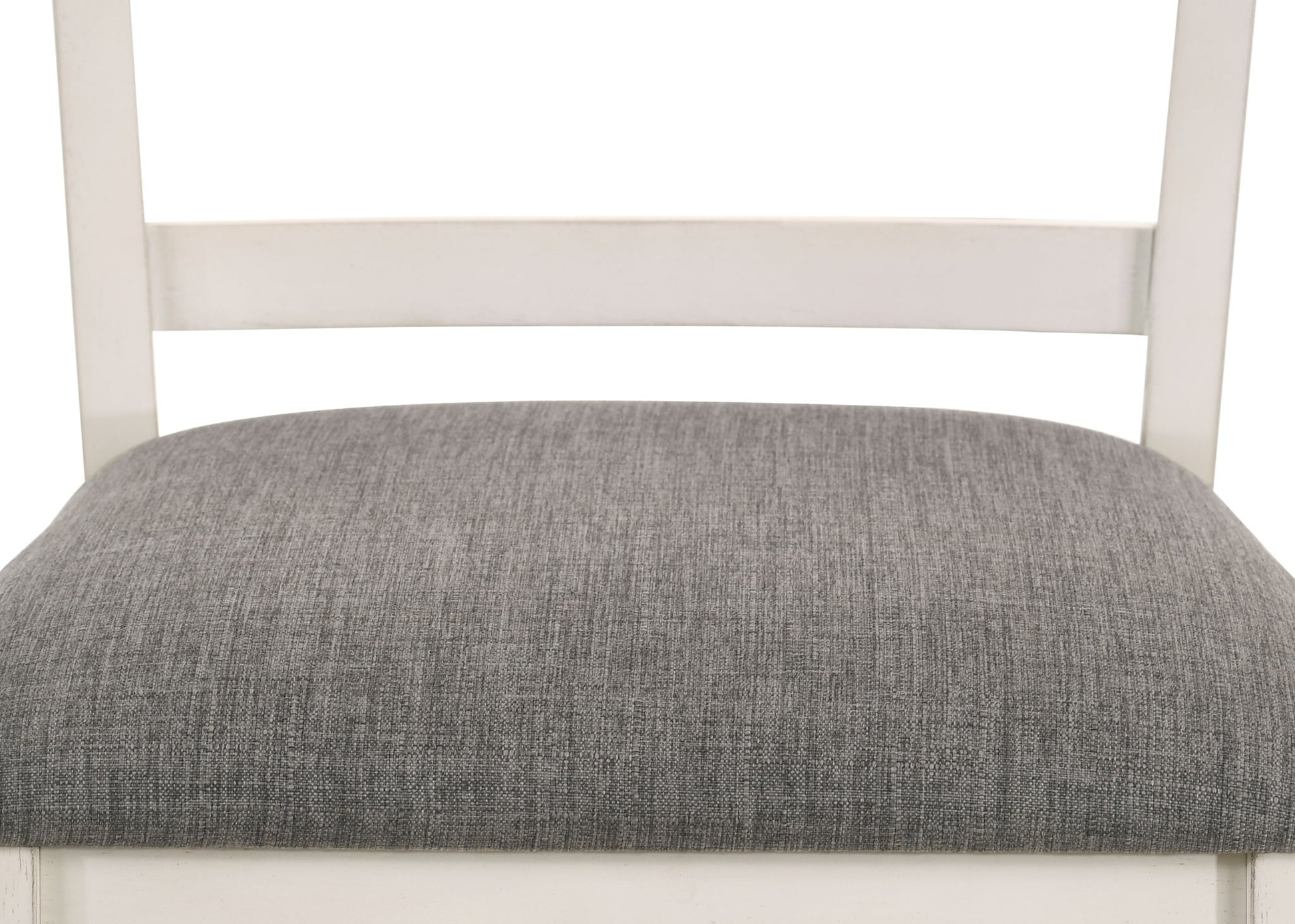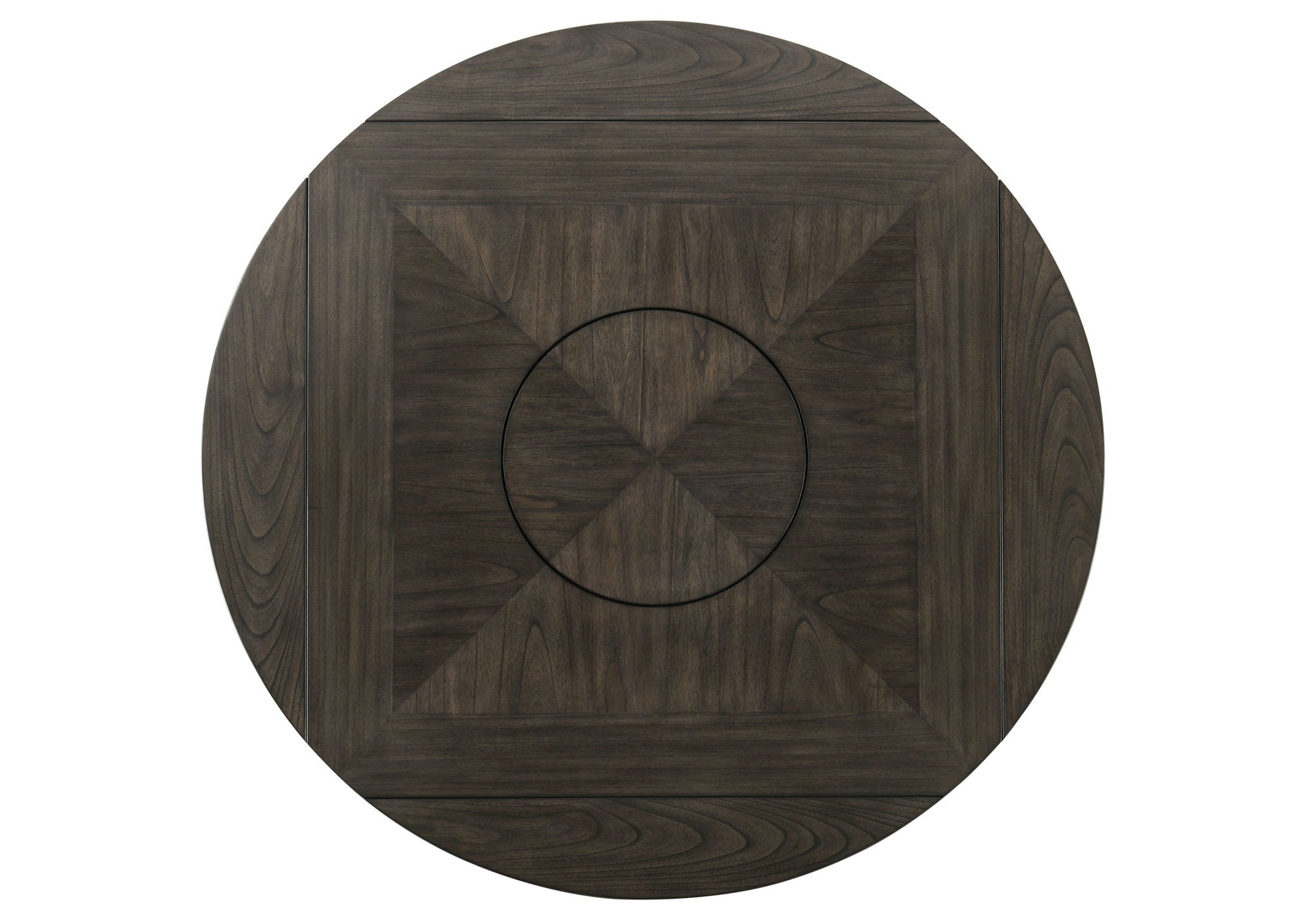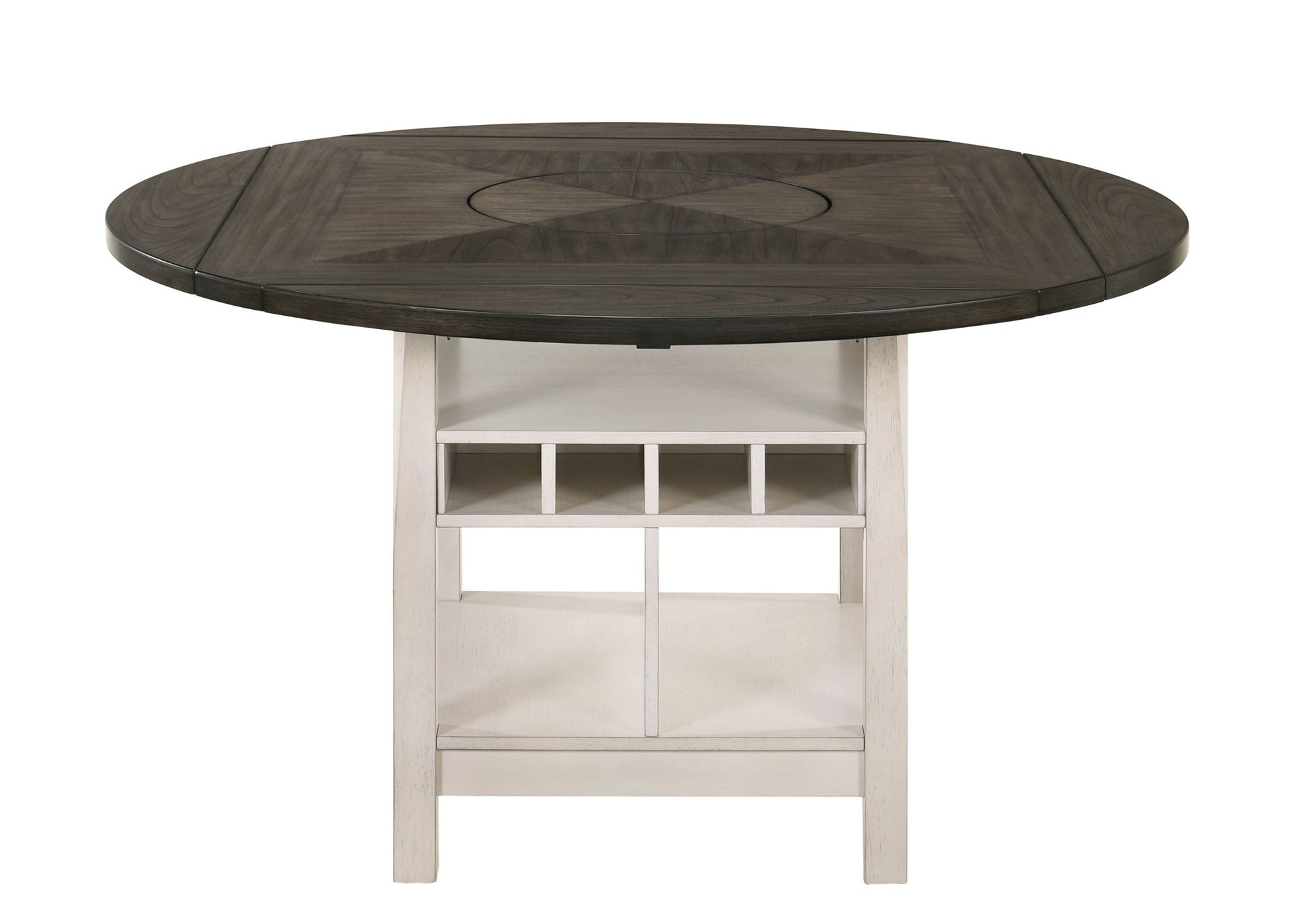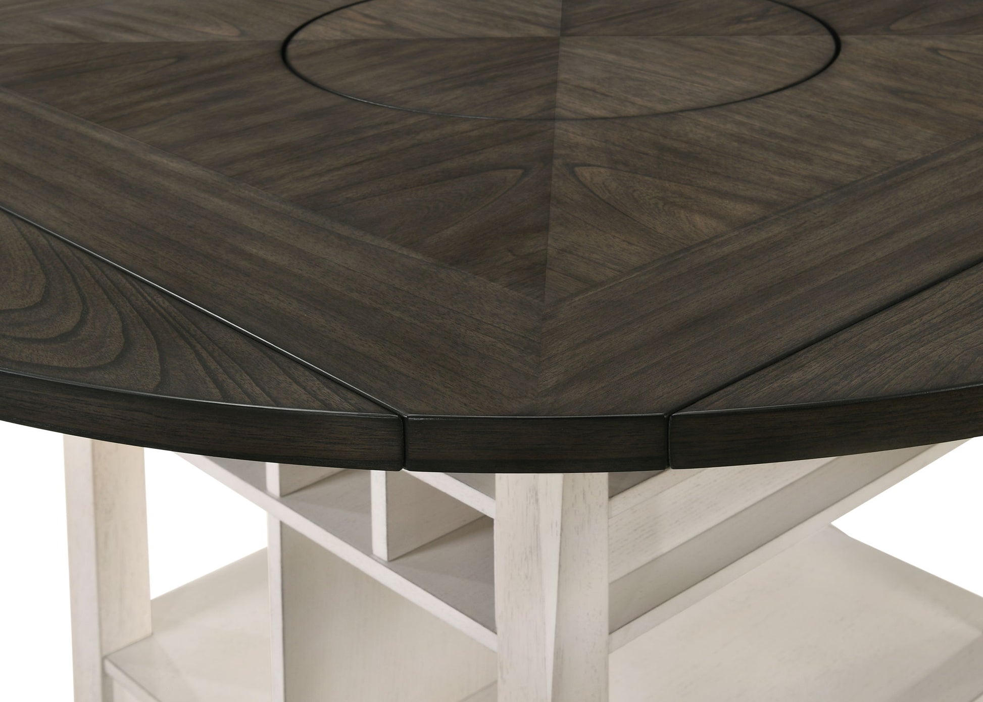 Elevate your dining experience with our contemporary dining ensemble. Infused with a modern twist on classic design, this set effortlessly balances sophistication with functionality. Featuring a two-toned wood finish complemented by sleek, white chairs. Four drop leaves to expand the size, a built in turntable, and storage efficiency, it promises to be a delightful and practical centerpiece for all your memorable gatherings.
