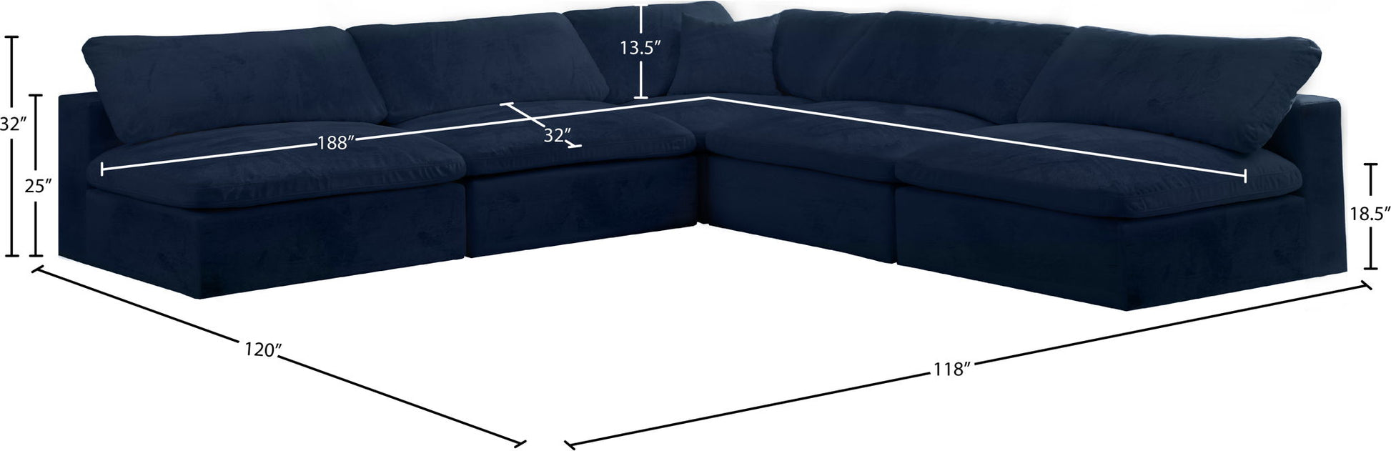 Cozy - 5 Piece Modular Corner Armless Sectional - Navy