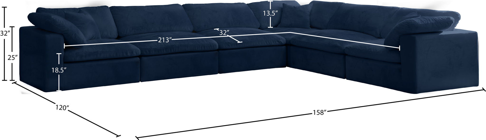 Cozy - 6 Piece Modular Corner Sectional - Navy