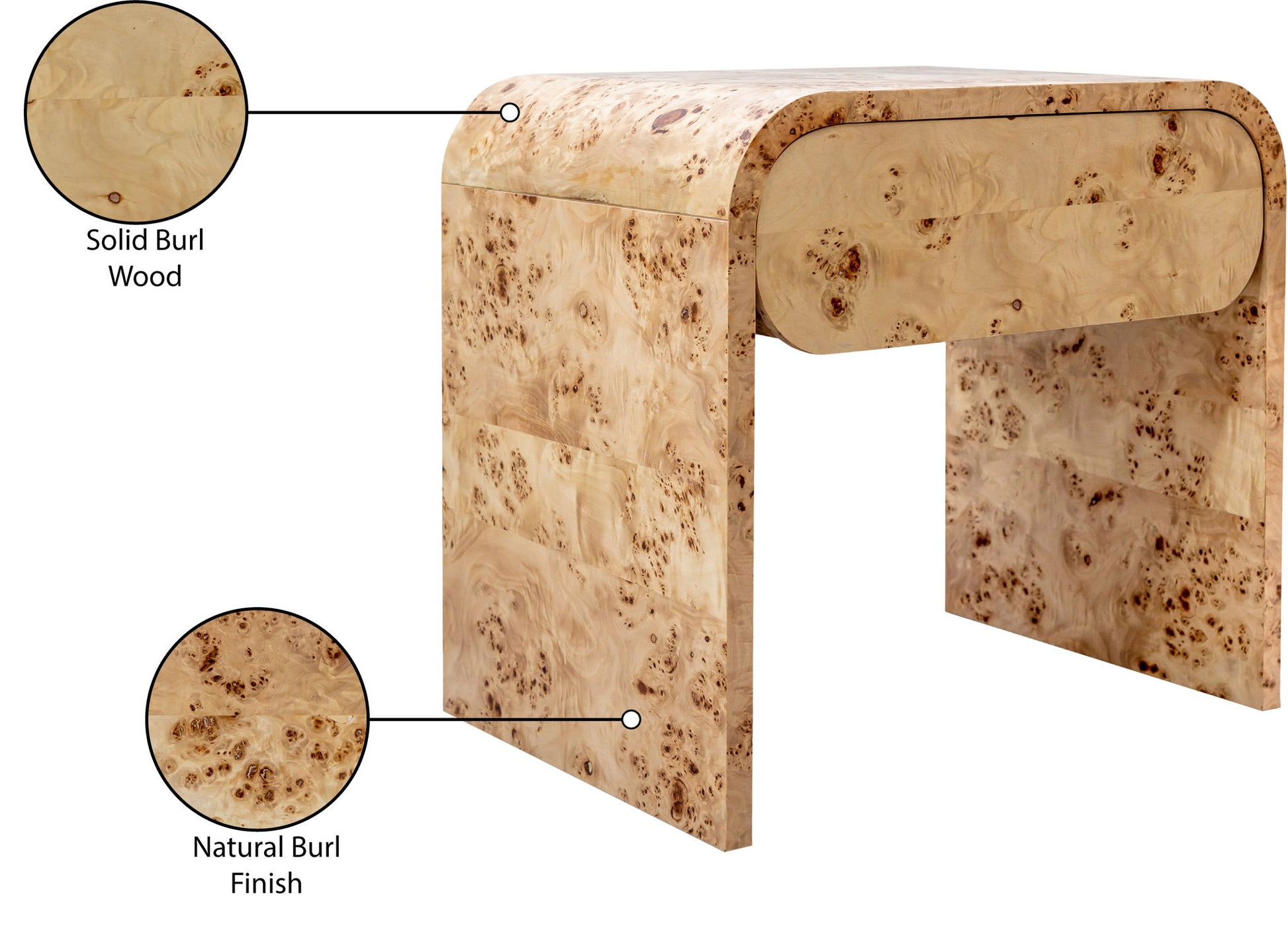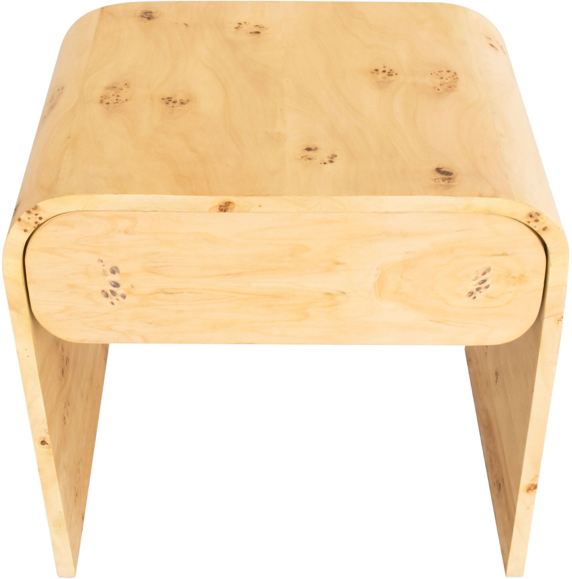 Bring midcentury design elements to life in your bedroom space with this Cresthill nightstand. This lovely piece grabs attention immediately with its stark brushed oak finish and its minimalist lines with their curved slant. This nightstand is made from solid oak wood for amazing durability and long-lasting service life. A single drawer keeps everything you need handy and within easy reach beside your bed.