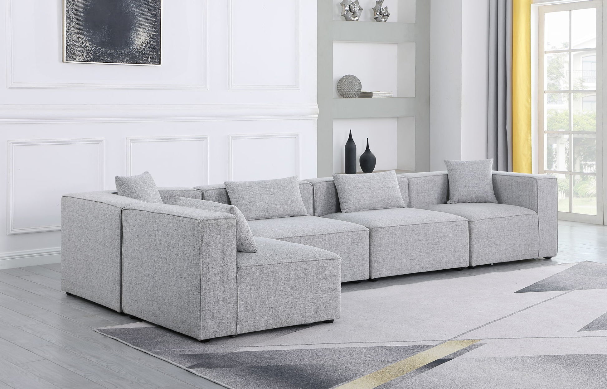 Cube - Linen 5 Piece Modular Sectional - Gray
