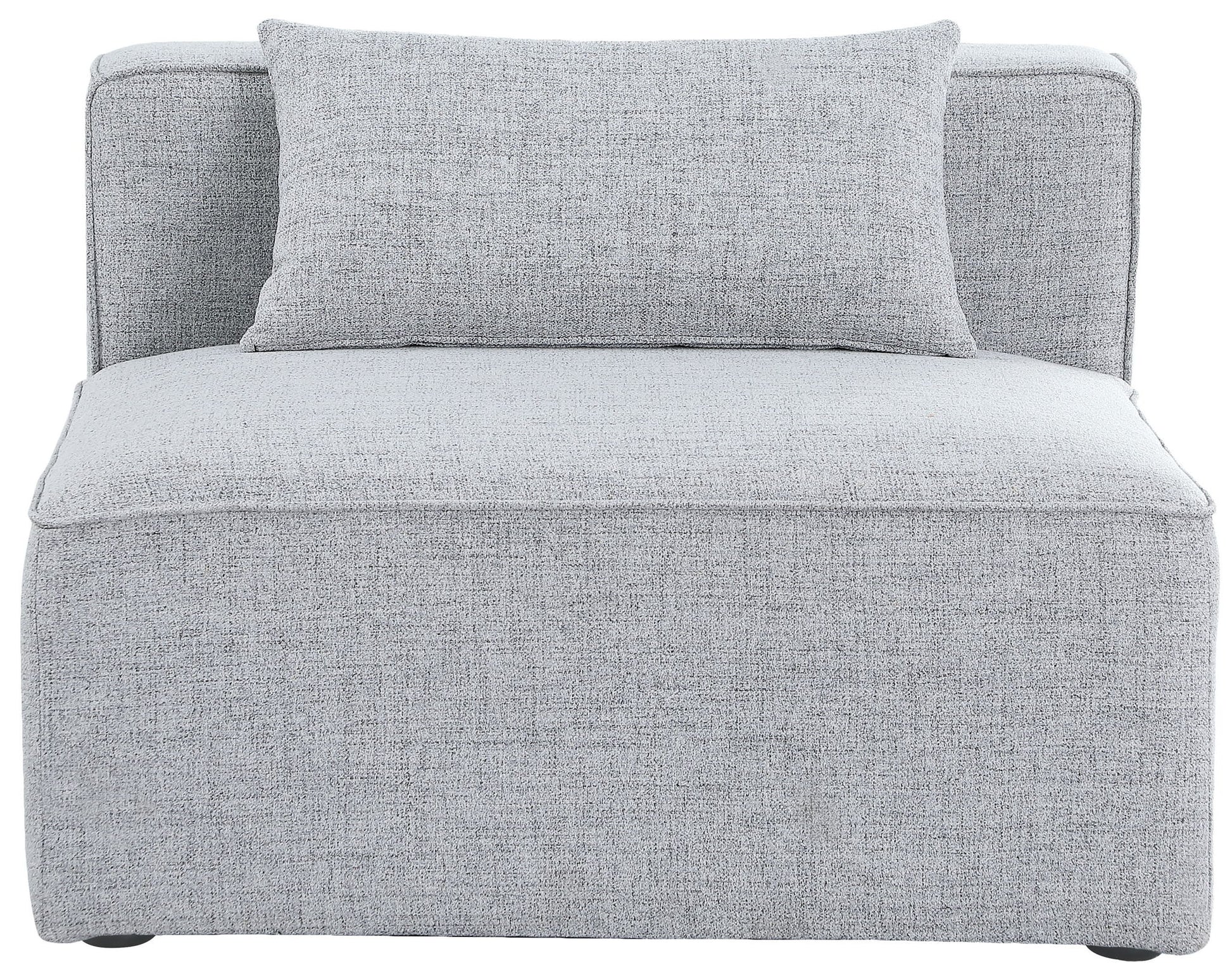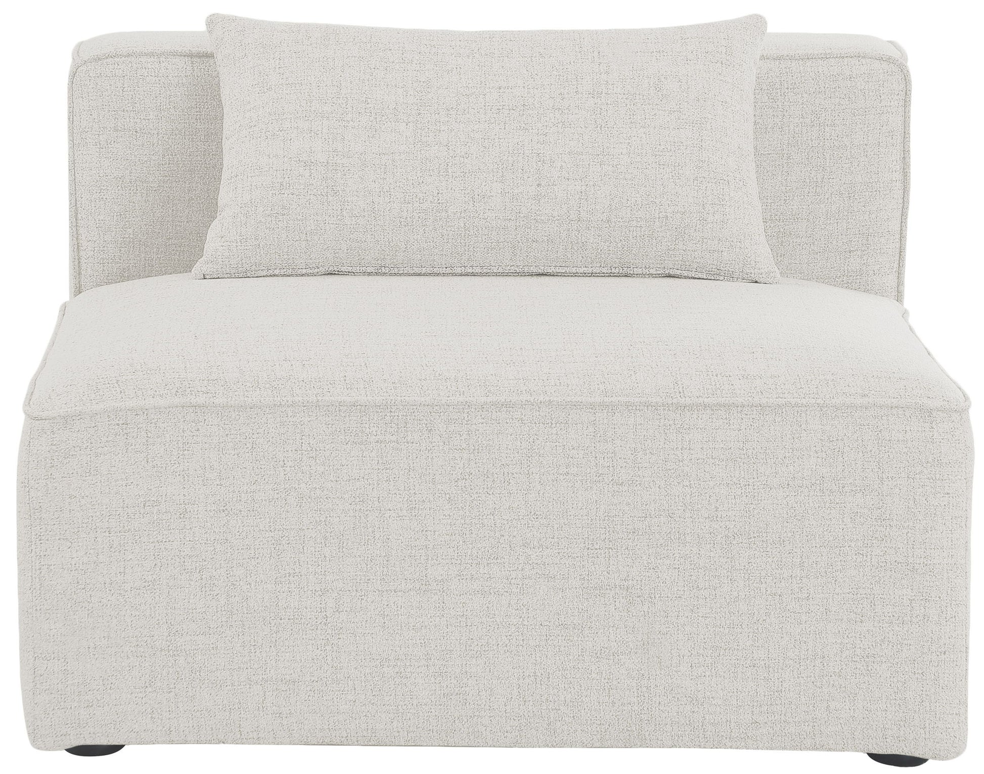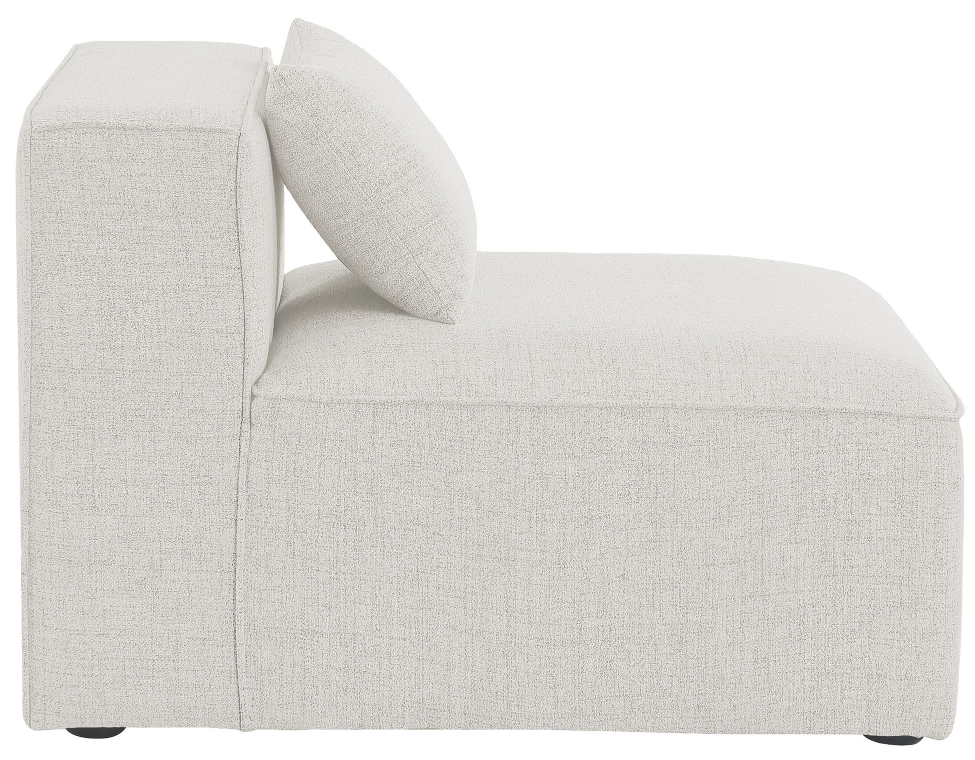 Treat yourself to some long overdue "me time" when you're seated on this Cube Modular Armless Chair. This beautiful modular unit is both eye-catching and elegant, features durable linen upholstery in a soft color that meshes well with nearly any existing color scheme. Pair this modular Armless Chair with other items in the same collection to create an unlimited number of combinations and enjoy the custom seating arrangement of your dreams. Latches underneath make it easy to attach pieces to one another.