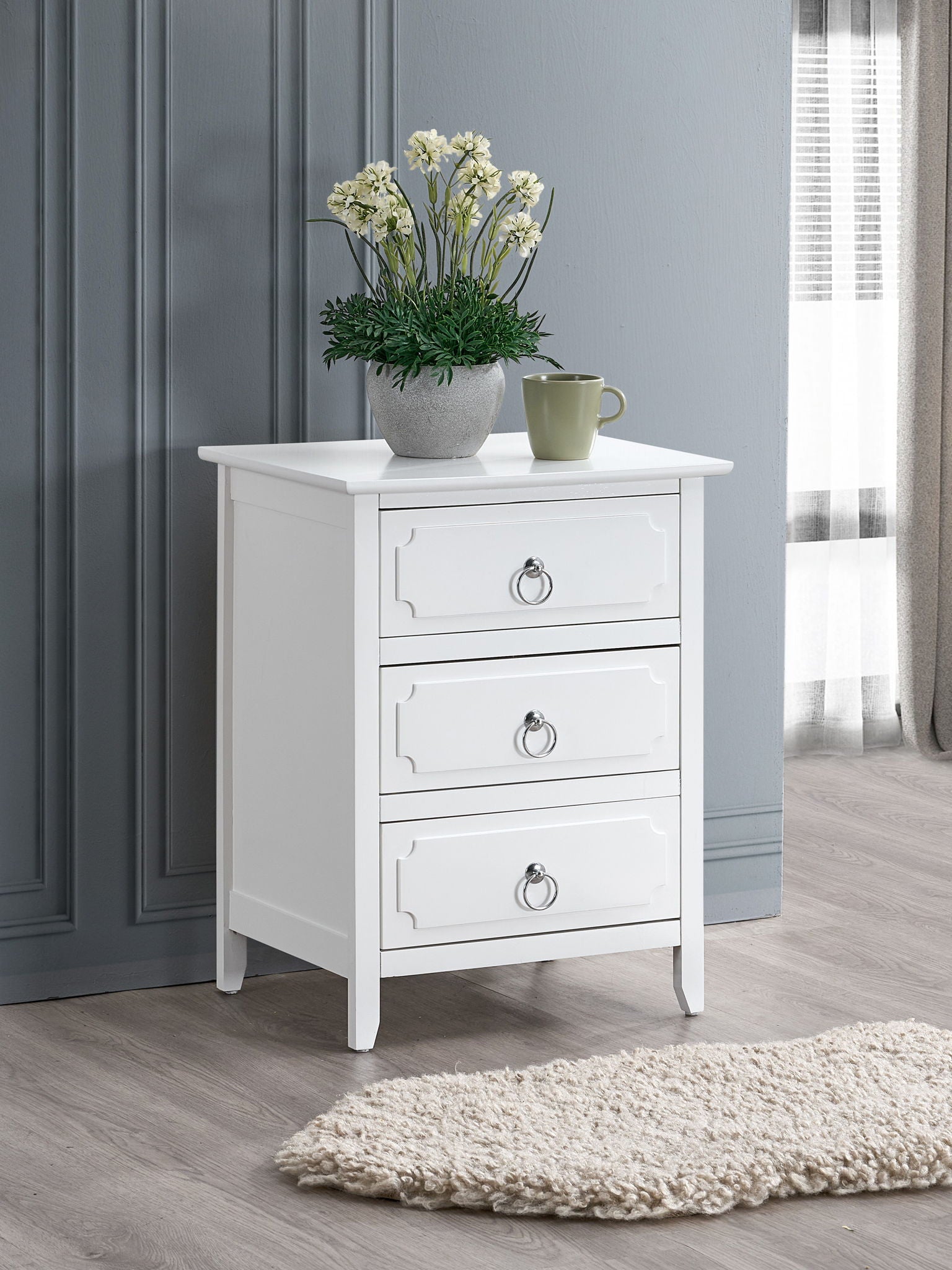 Daniel - 3 Drawer Wood Nightstand - White
