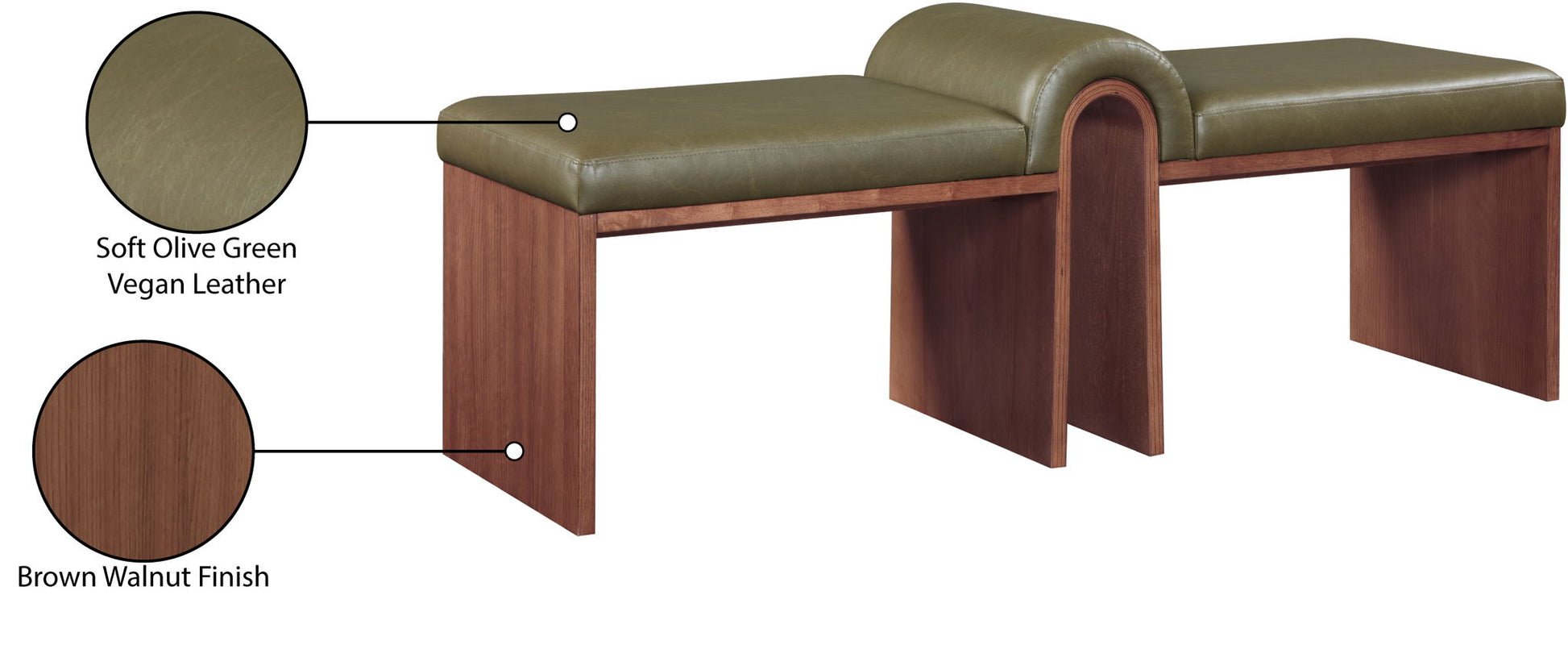 Delphine - Vegan Leather Upholstered Bench - Olive