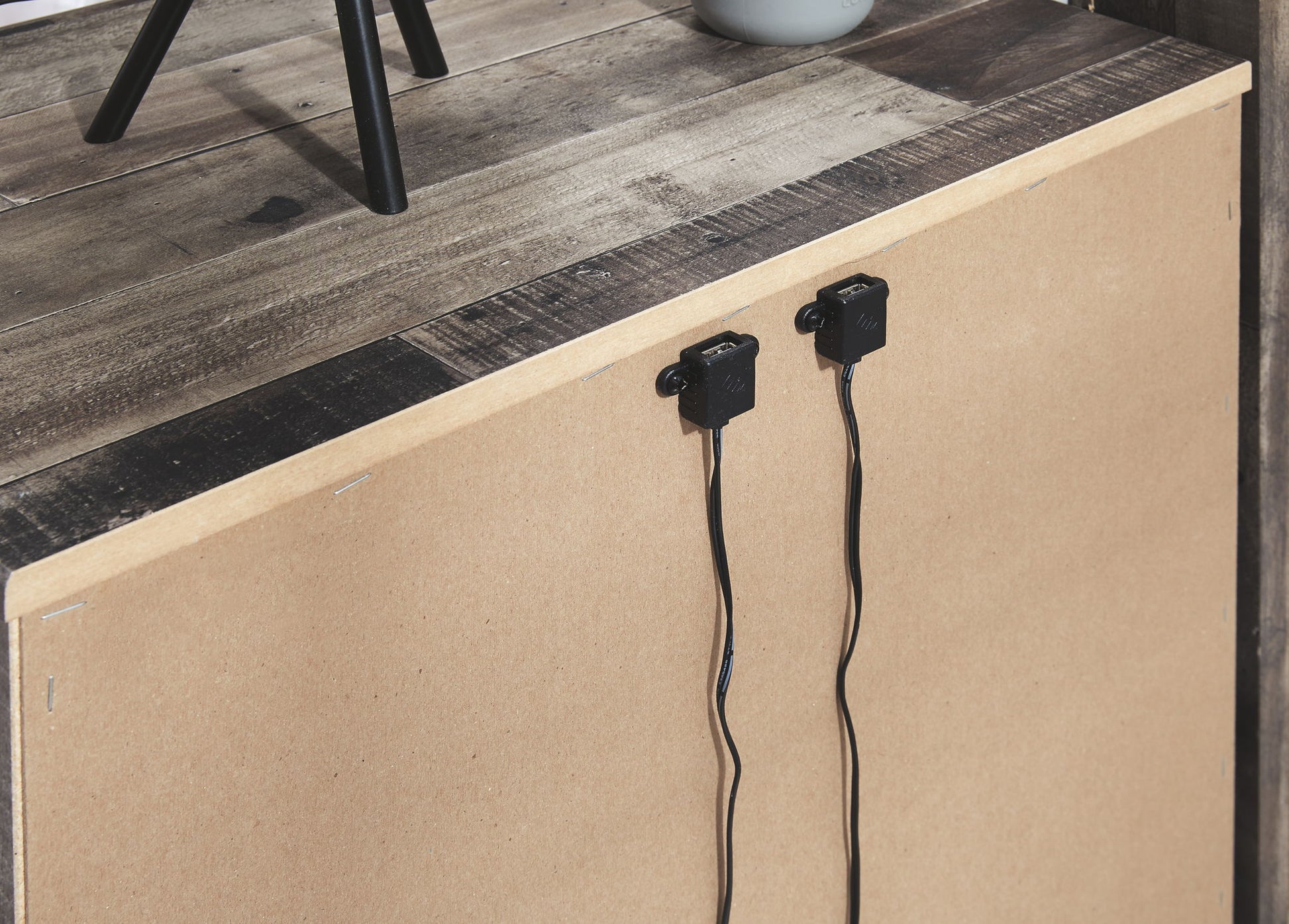 Modern yet hefty. This nightstand makes an urban eclectic statement. Seasoned raw wood look merges with the clean lined design we love today. Muted rustic finish over replicated pine grain maintains its authenticity. Roomy drawers are flanked with attractive framed front and pilasters. Handles with antiqued gunmetal finish complete this beauteous look with easy to pull function.