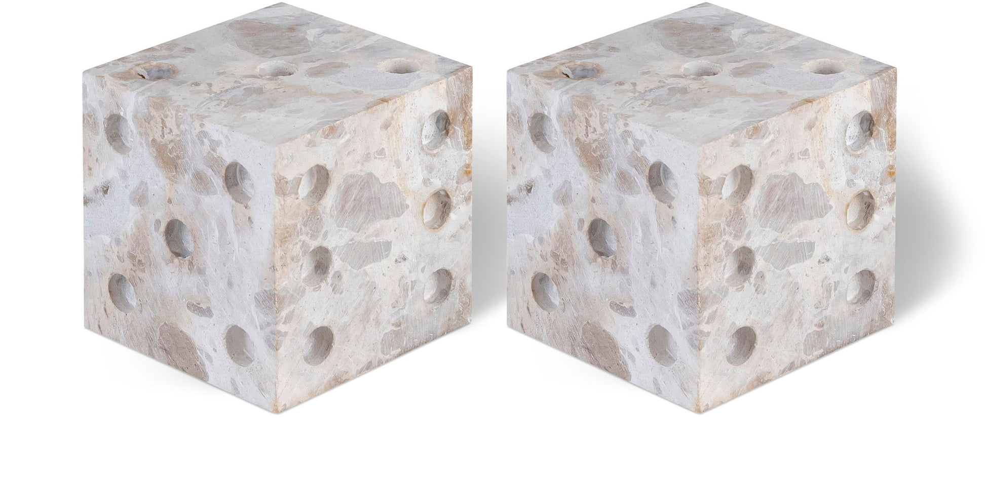 Playful sophistication is curated to design the Capri marble Dice decorative set, featuring two hand-shaped marble dice that blend whimsy with timeless materiality. Each dot is carved with precision, making every piece uniquely sculpted by nature and stone.
