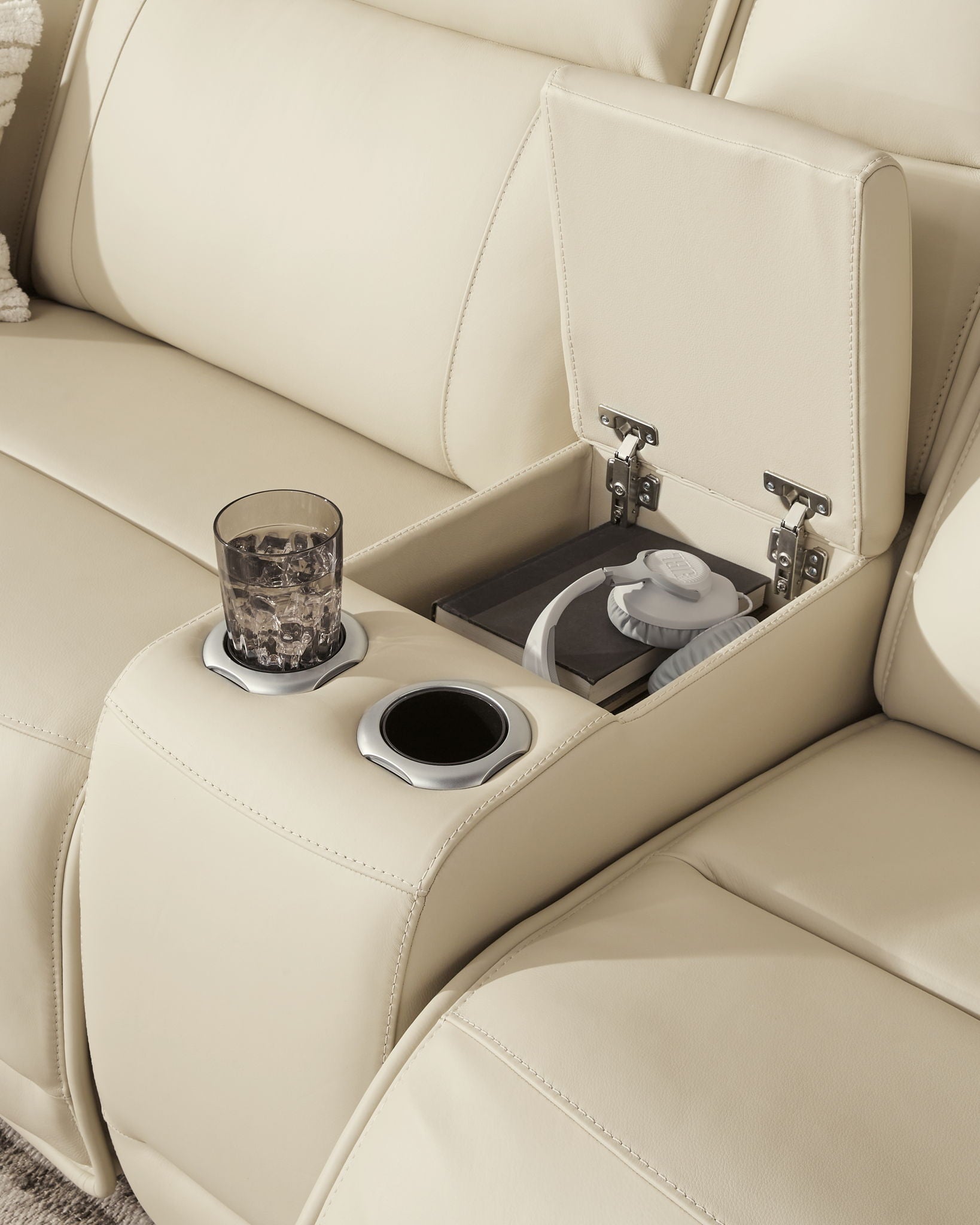 Double Deal - 2-Piece Power Reclining Loveseat Sectional With Console - Almond