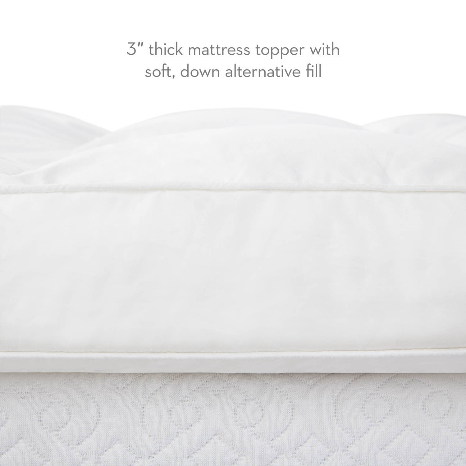 - 3" thick down alternative mattress topper adds a plush layer to any mattress