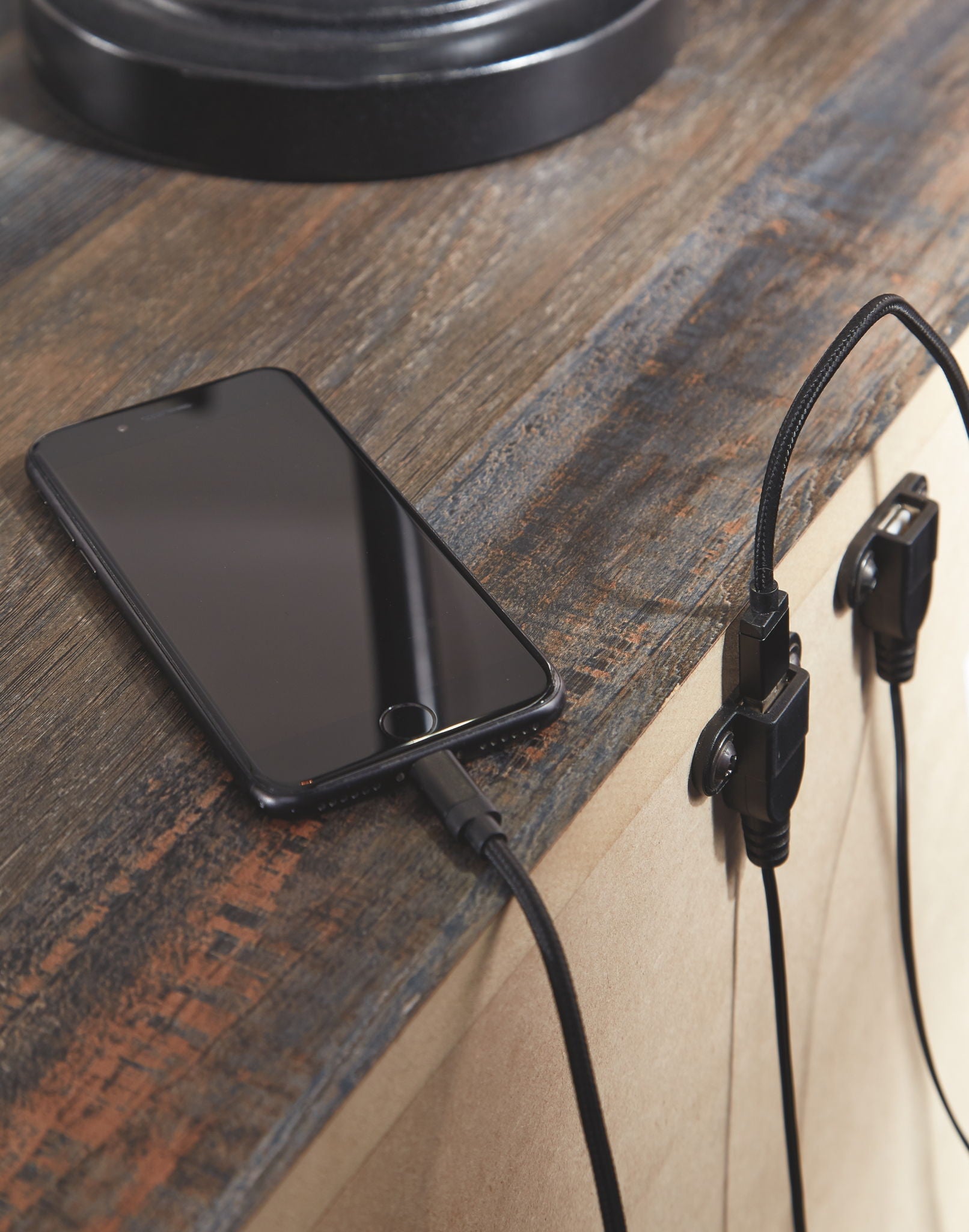 Burnt orange and teal colors accent a rustic finish in a replicated woodgrain with authentic touch. Large scaled dark colored handles. Cases feature a framed front and pilasters. All panel headboard feature decorative matte sconce lights. Side roller glides for smooth operating drawers.