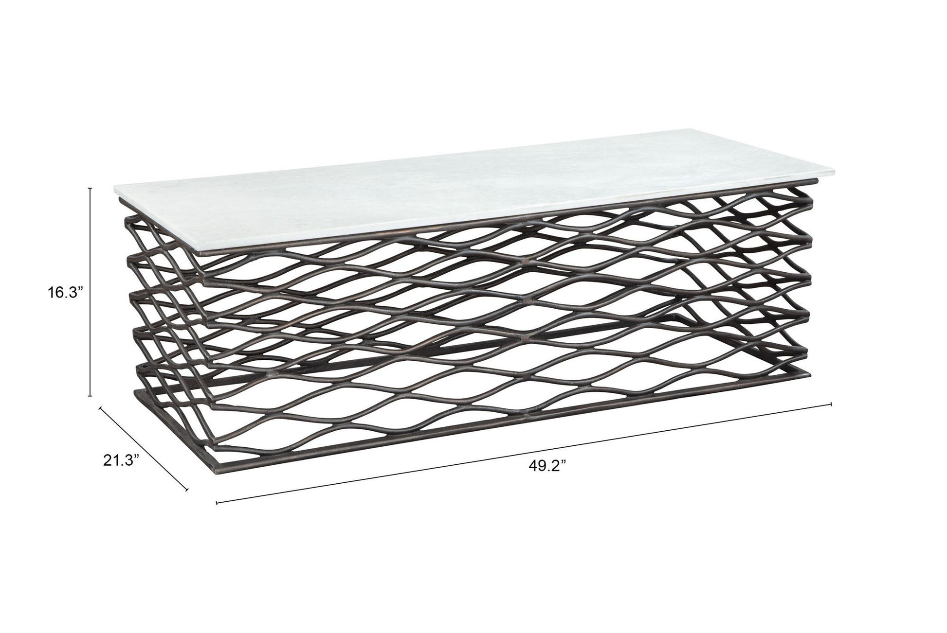 The Duchess Coffee Table has a steel frame with a marble top. This piece works great in any modern residential or hospitality space.