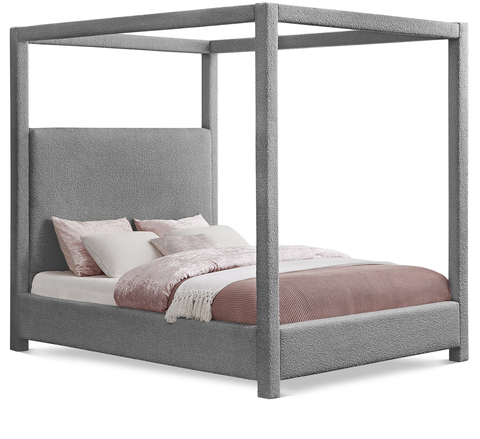 Experience the epitome of luxury and serenity with the Eden Boucle Fabric Canopy Bed, a majestic haven that elevates your bedroom into a royal chamber. Wrapped in a rich boucle fabric, this captivating bed exudes timeless elegance and invites you to indulge in restful nights and dreamy mornings. The airy canopy, draped in the same luxurious boucle fabric, creates a sense of intimacy and seclusion, transforming your sleeping space into a private sanctuary. Imagine reading a captivating book or enjoying a late-night conversation under the soft glow of string lights draped across the canopy, creating a truly magical atmosphere.