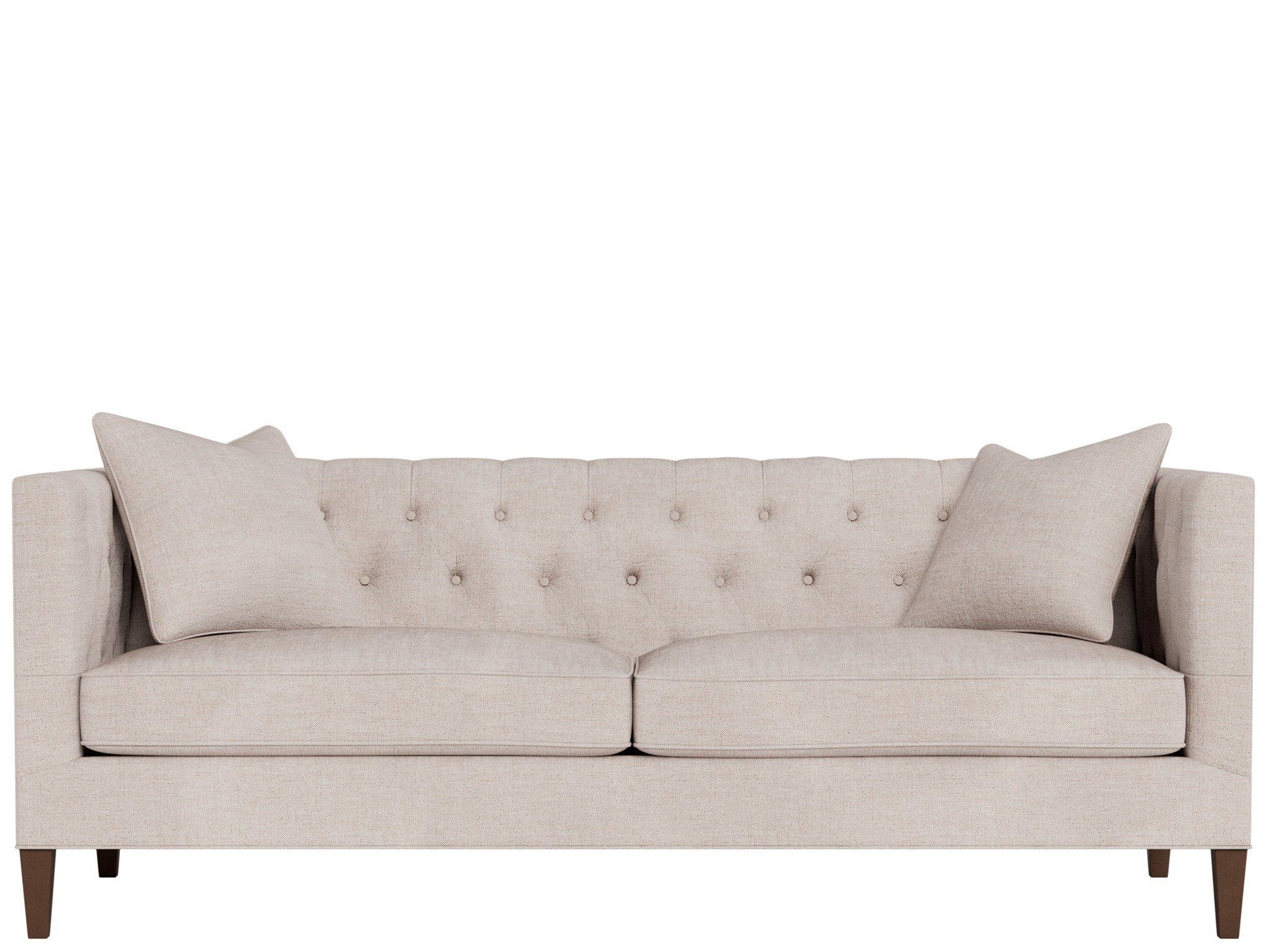 A strong silhouette, button-tufting and sleek metal legs fuse together to create the Ellyson Sofa, a chic and modern comfort piece.