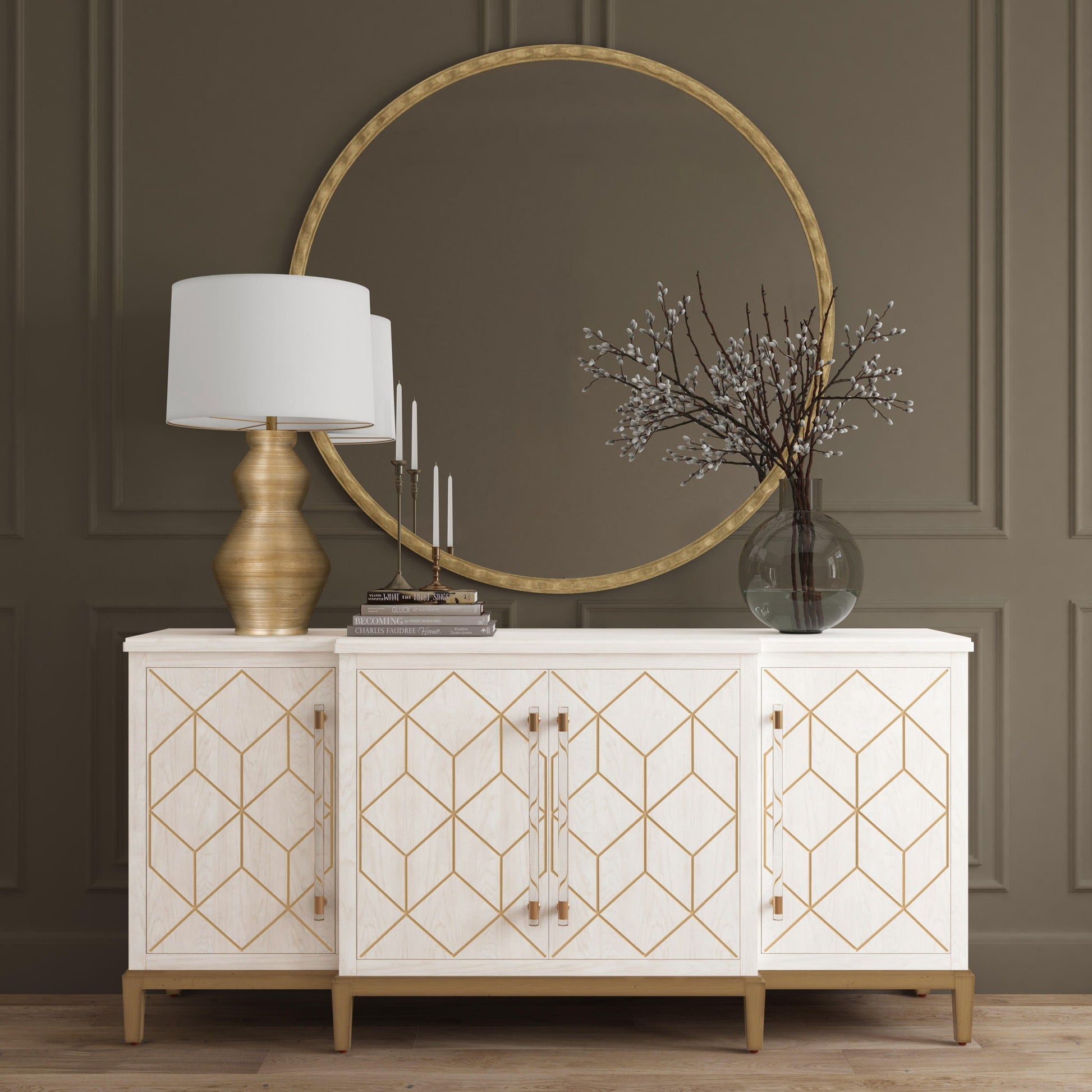 The Entralla Wall Mirror features a round, modern design with a hammered frame in a rich gold finish. The textured frame adds visual interest and a touch of luxury, while the sleek round shape complements a variety of interior styles. This mirrors simple yet elegant design makes it a perfect fit for both contemporary and traditional spaces. The Entralla Wall Mirror is an ideal choice for adding a sophisticated and functional element to your home decor.