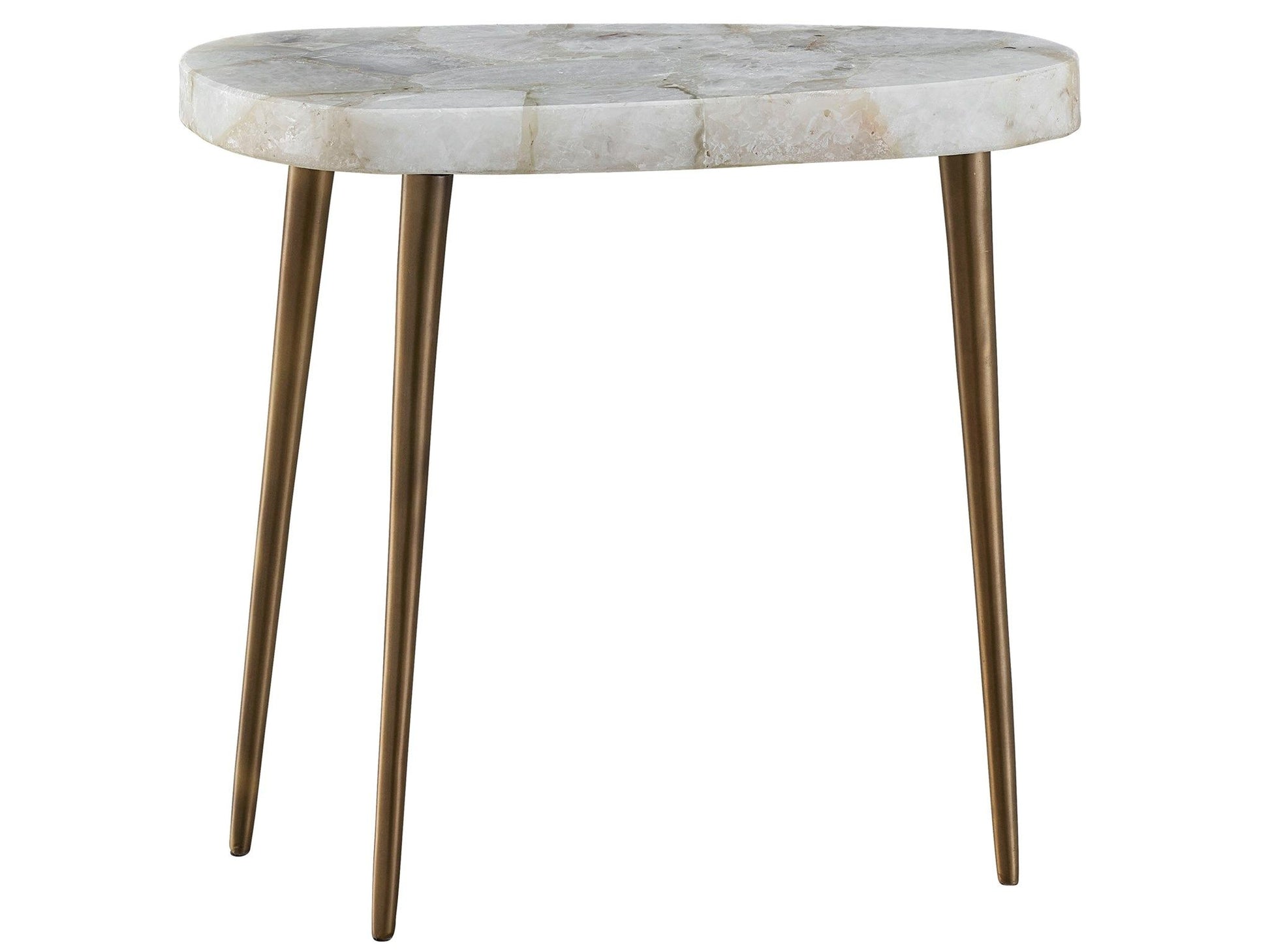 Infuse spaces with an elemental elegance. An intricate agate top is offset by sleek antique satin brass legs.