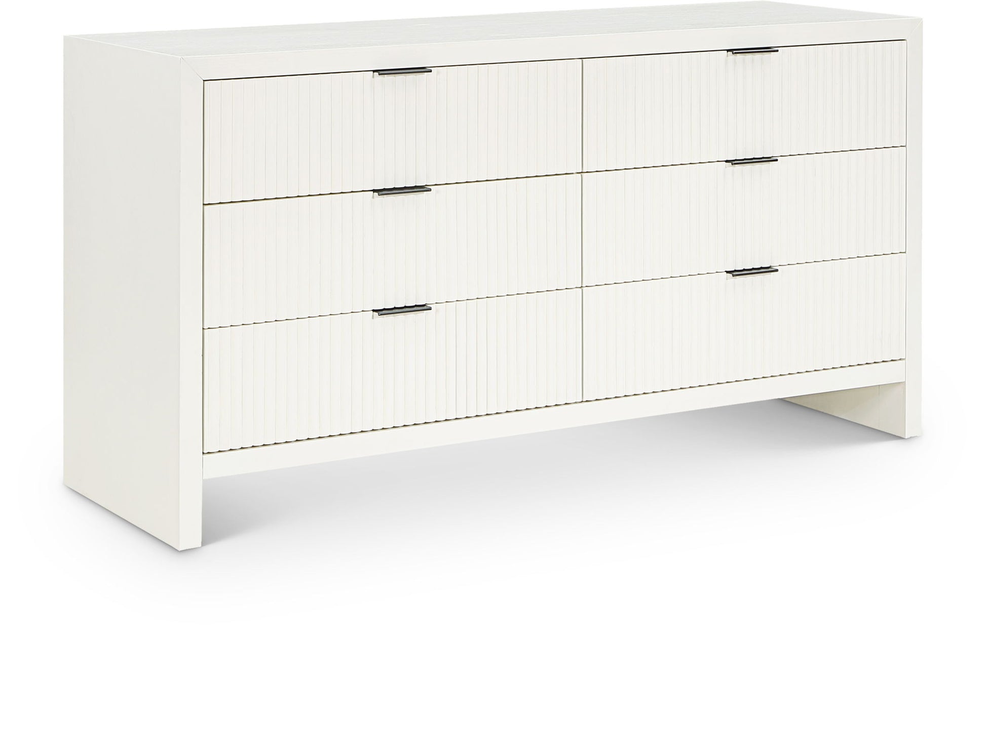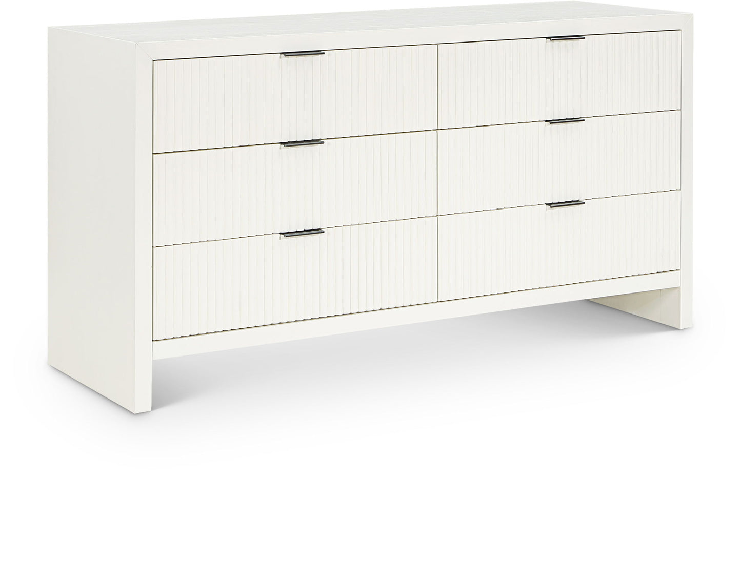 The exquisite Fairfax Dresser is a perfect blend of style and functionality. The meticulously crafted fluted drawer fronts, with their subtle grooves, lend a touch of sophistication to the piece. The matte black metal handles are not only visually appealing but also easy to grip, making it effortless to open and close the drawers. The dresser is crafted from solid wood, providing a durable and sturdy construction. Its sleek finish enhances its modern and contemporary appeal, making it an exceptional addition to any living space.