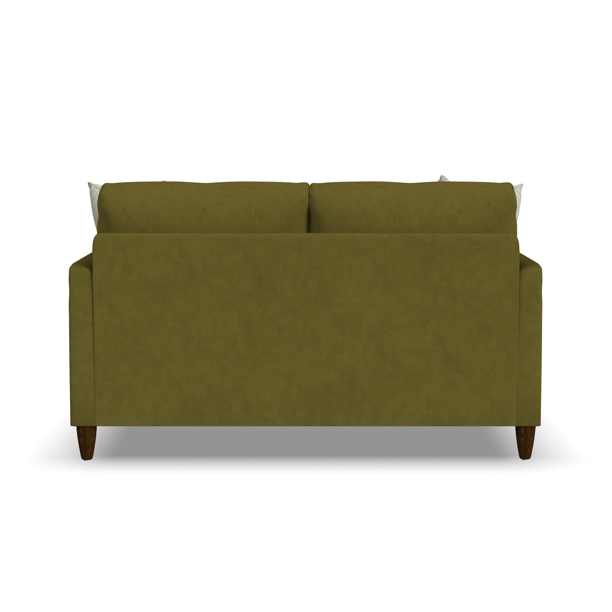Sweet and Architectural. Clean lines and a cantilevered front make the Fern loveseat a welcome addition to any home. With generous seating space from arm to arm, Fern provides plenty of roomy comfort for two people to lounge and relax together. Round tapered legs positioned directly under the narrow track arms offer a distinctively modern architectural feel to spaces. Loose back cushions with a casual pleat design and the included knife-edge accent pillows complete the on-trend look of Fern.