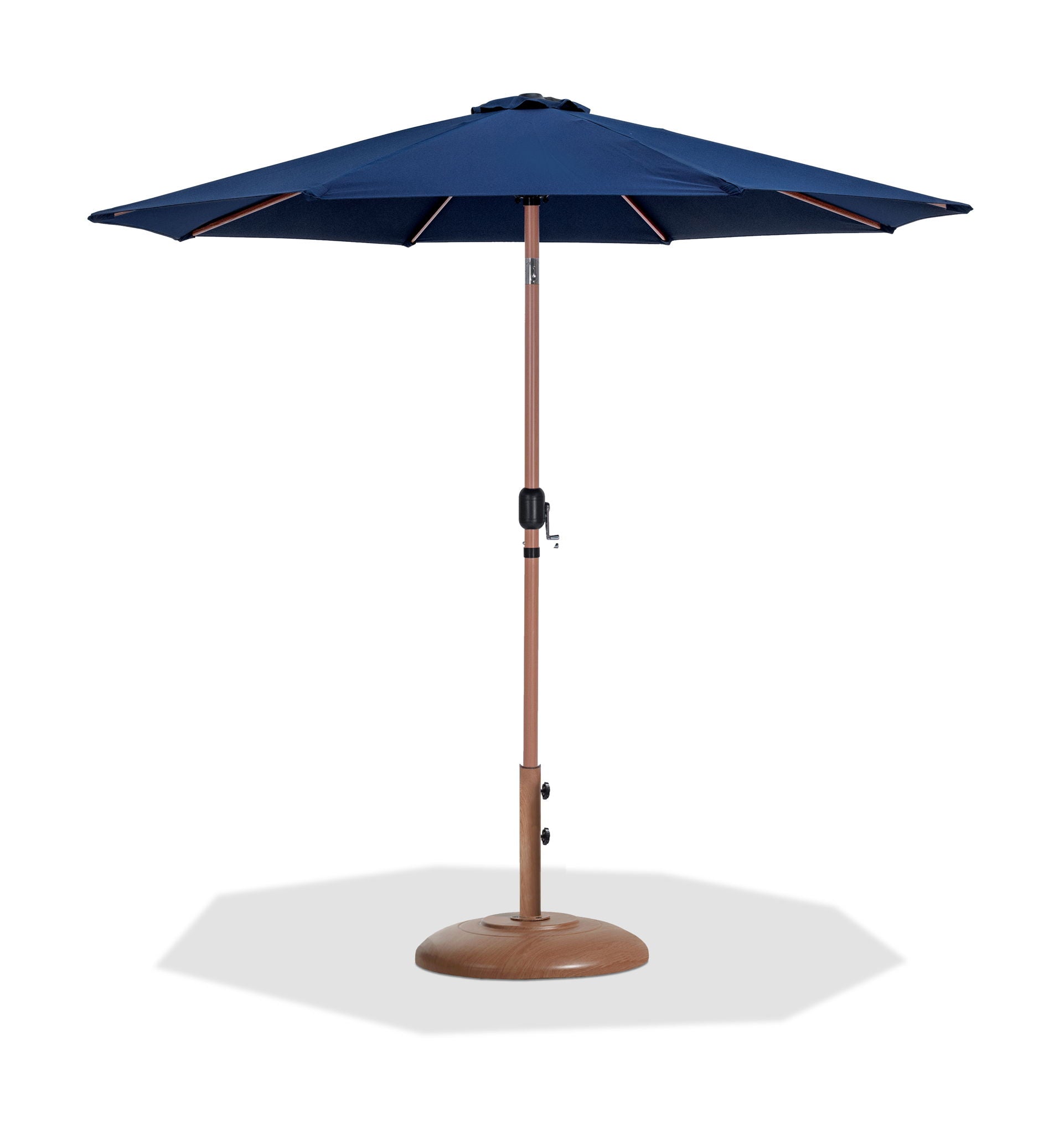 Bask in the shade wherever it's needed when you bring home this Fiji fabric and teak aluminum patio umbrella with base set. This ingenious umbrella and base can be used as a standalone umbrella on a deck or patio - or add it to your choice of table for a sturdy solution for hiding from the sun's rays. The aluminum pole weathers the elements like a champ, and the umbrella is crafted from water-resistant fabric for a beautiful, lasting look.