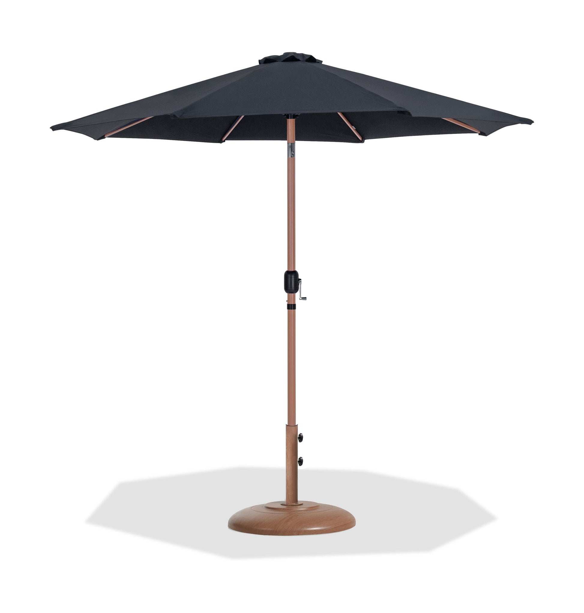 Fiji - Aluminum Patio Umbrella With Round Teak Base - Black