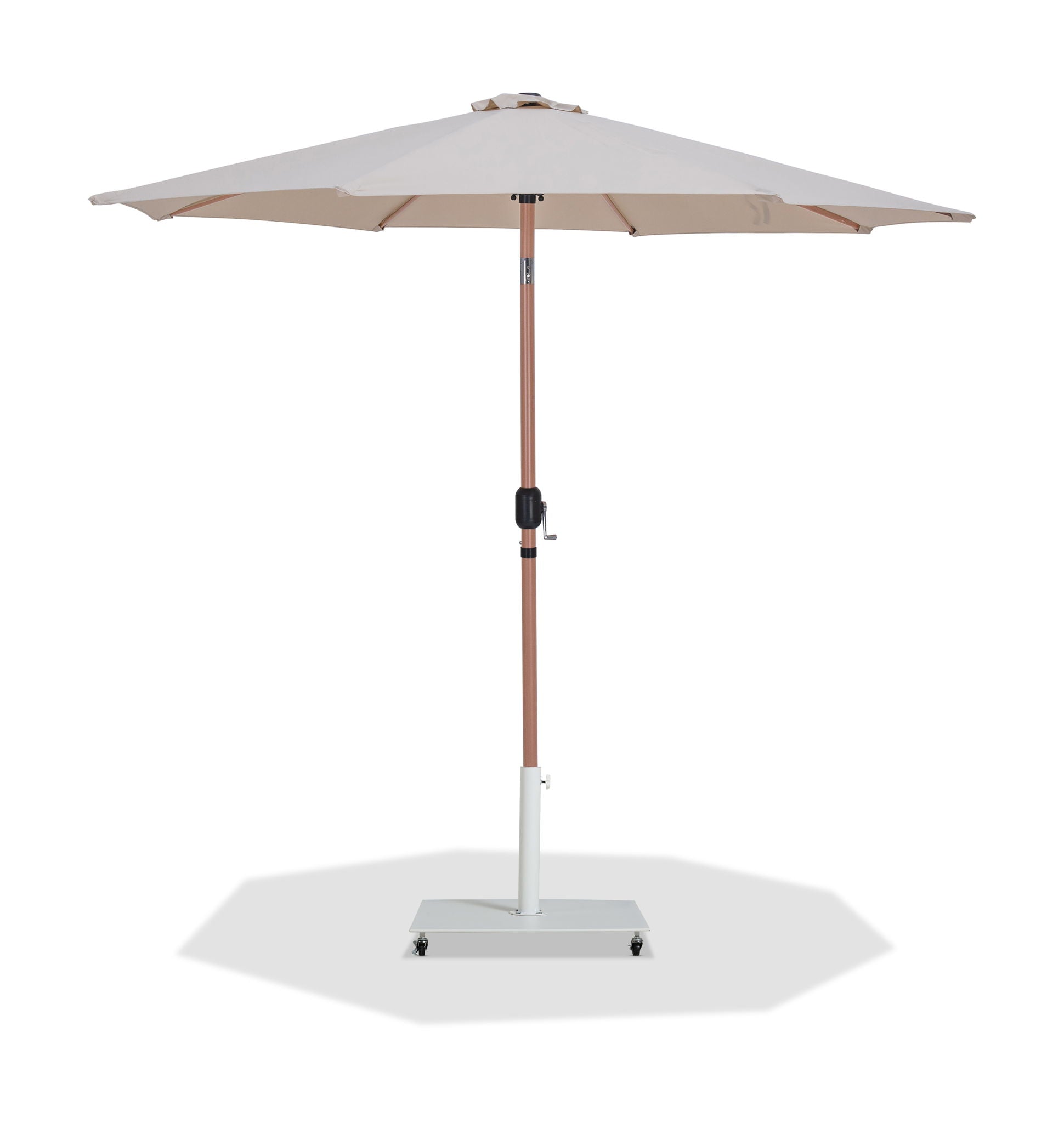 Fiji - Aluminum Patio Umbrella With Square White And Teak Base - Beige