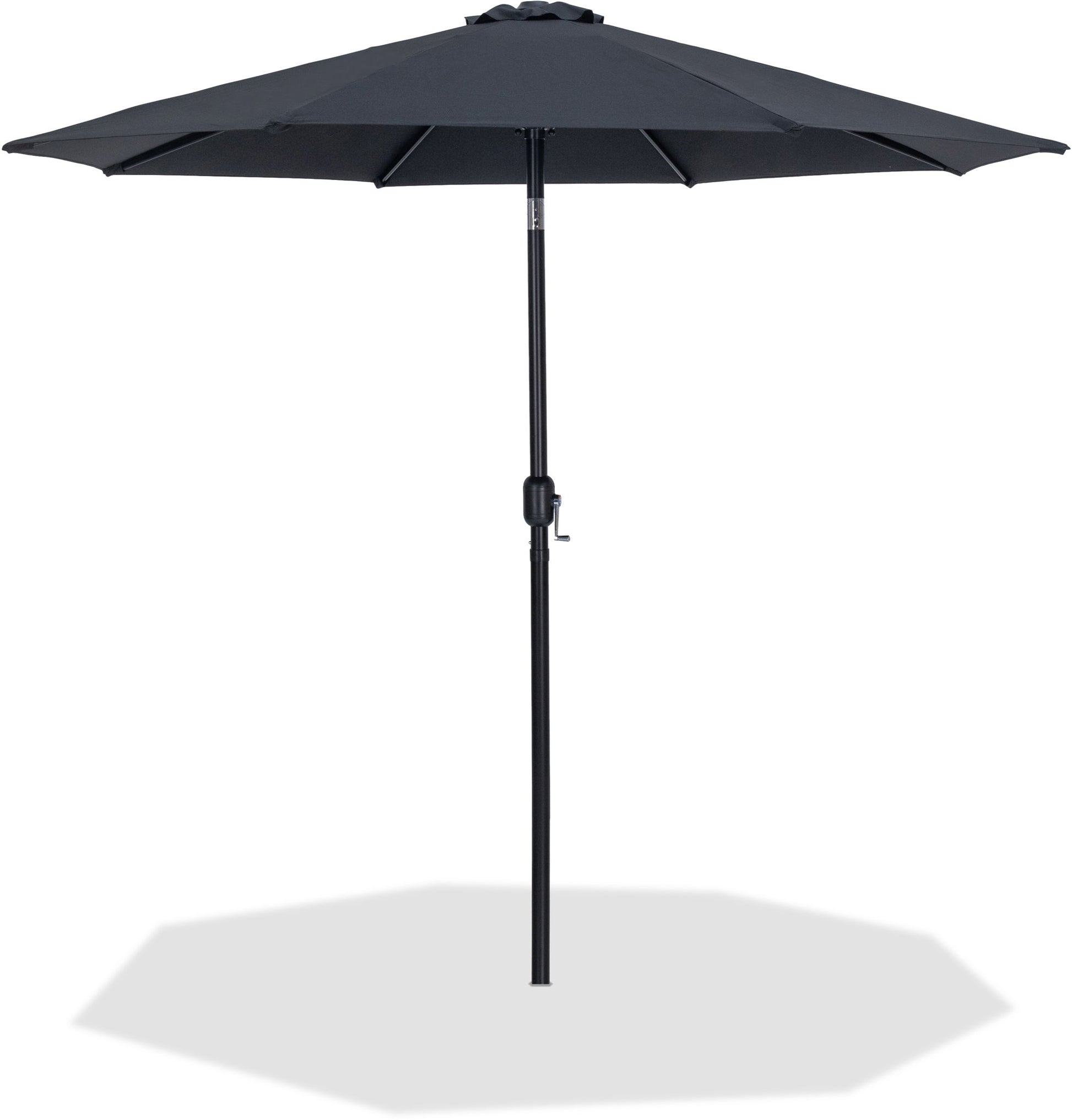 Bask in the shade wherever it's needed when you bring home this Fiji fabric and matte black aluminum patio umbrella. This ingenious umbrella can be used as a standalone umbrella on a deck or patio - or add it to your choice of table for a sturdy solution for hiding from the sun's rays. The aluminum pole weathers the elements like a champ, and the umbrella is crafted from water-resistant fabric for a beautiful, lasting look.