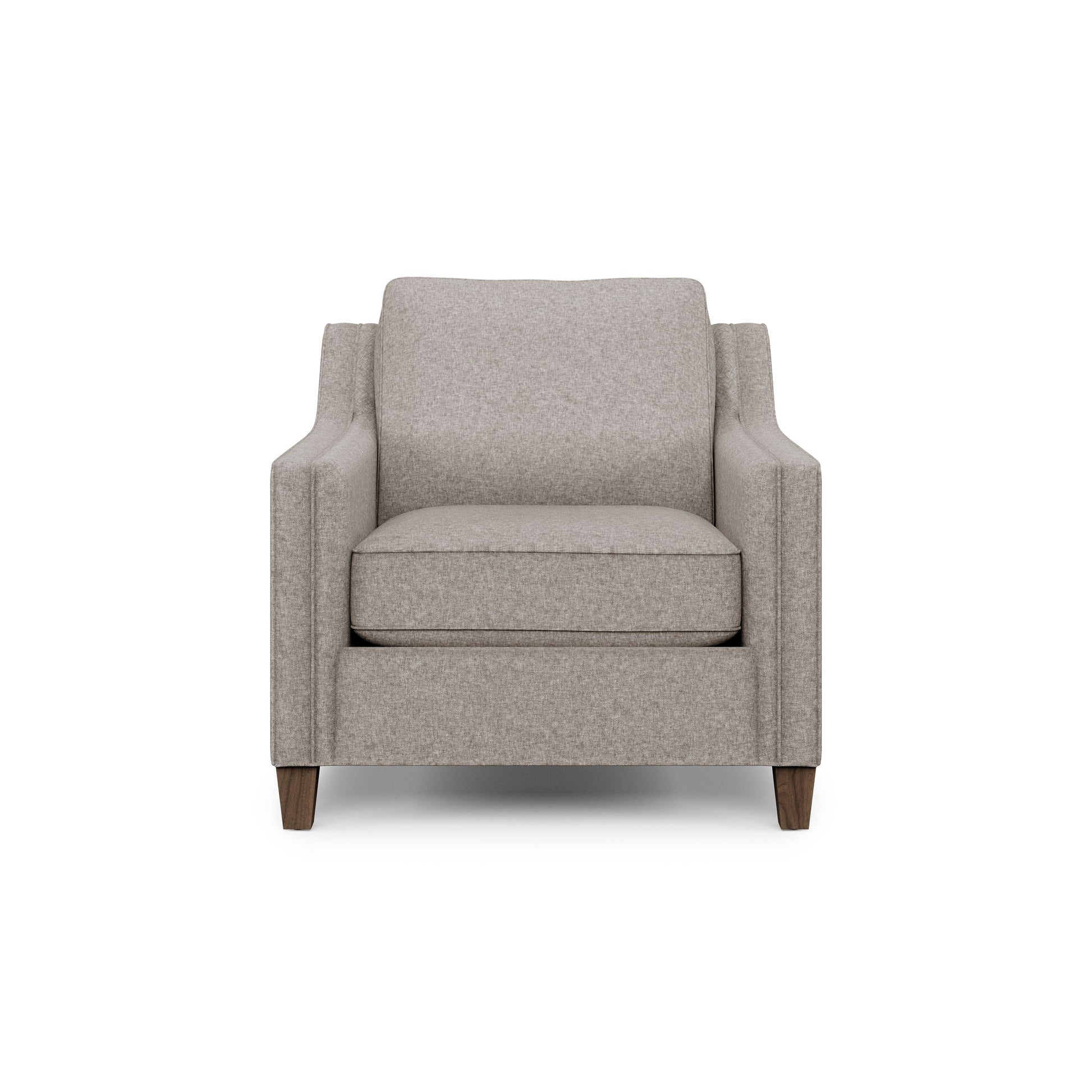 Tailored Elegance. Simplicity and elegance combine in a sophisticated silhouette with the Finley chair. Featuring a distinctive profile with sloped, tapered track arms and attractive welt detailing, this stationary design is an elegant statement for any home. The semi-attached back and removable, reversible seat cushion make it easy to clean and maintain your chair. This stately frame sits on sleek, square-tapered legs and is available in hundreds of fabric options to suit your style.