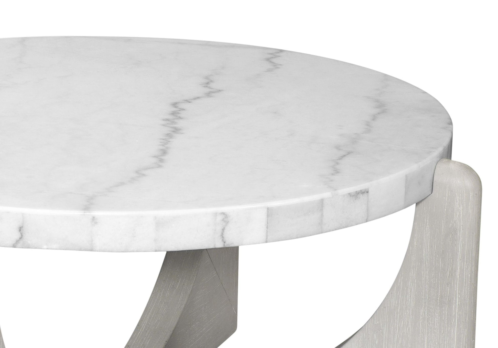 The Gavin Cocktail Table blends modern styling with timeless craftsmanship. Featuring a solid wire brushed frame in a calming driftwood finish, this table embodies thoughtful design and reliability. The dramatic oversized white marble top adds sophistication, creating a charming accent for your space.