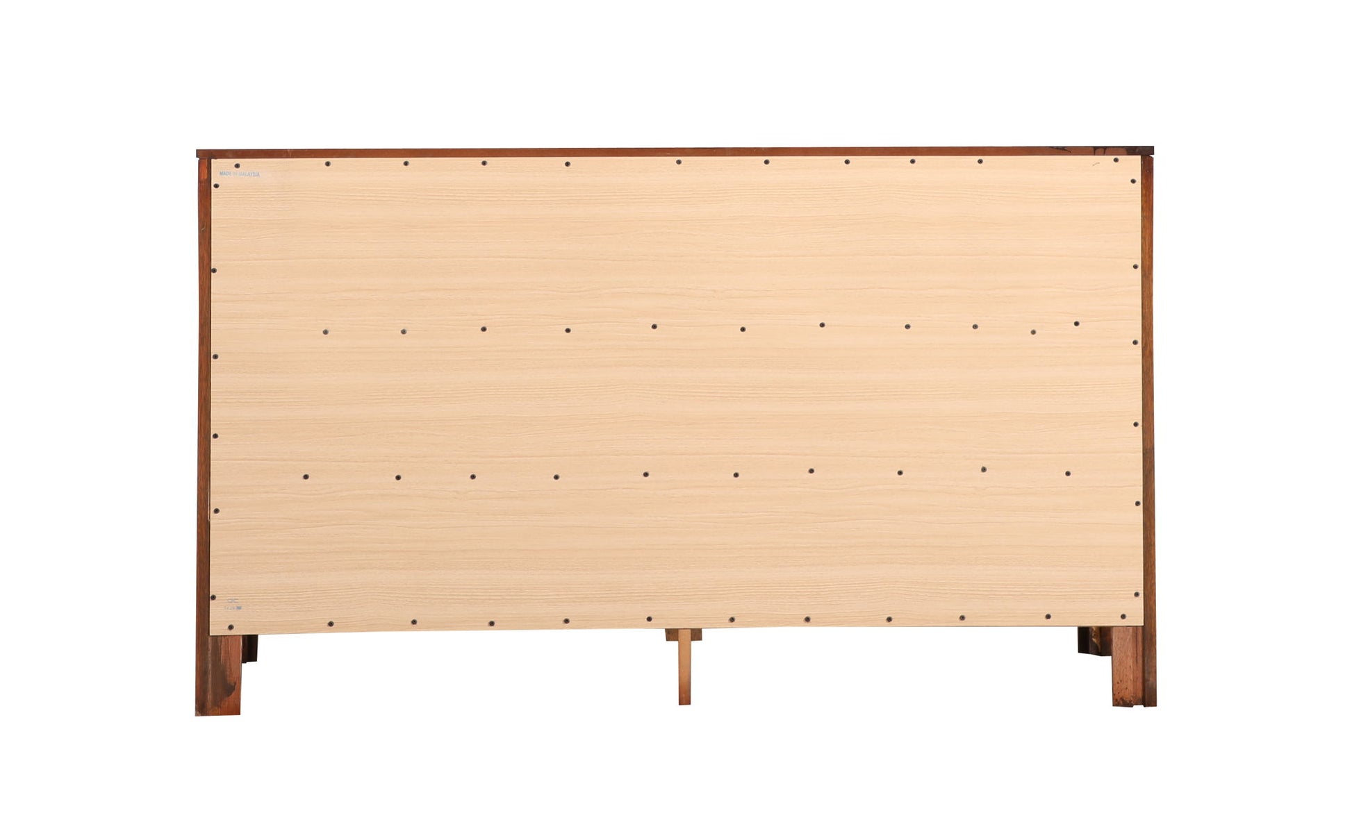 Constructed with durable wood veneers, this dresser is designed for endurance. The dove-tailed drawers not only enhance its durability but also allow for smooth, easy operation during your daily routines, ensuring practical use over time. Each drawer opens seamlessly, providing convenient access to generous storage space.