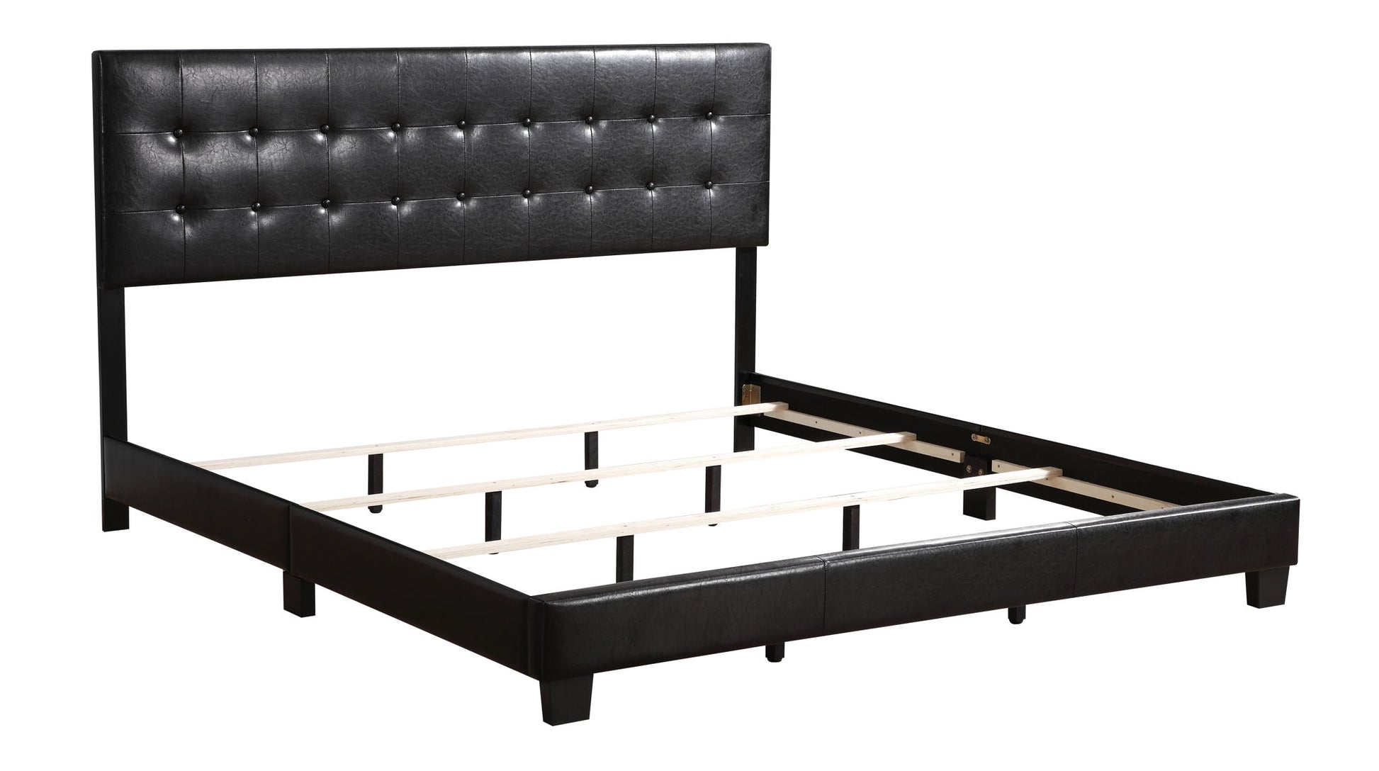 This bed from Glory Furniture showcases a sophisticated button tufted headboard that elevates the decor in any bedroom. Upholstered in sleek faux leather, it effortlessly enhances the overall look while providing a durable and easy-to-clean surface, making it an ideal choice for daily use.