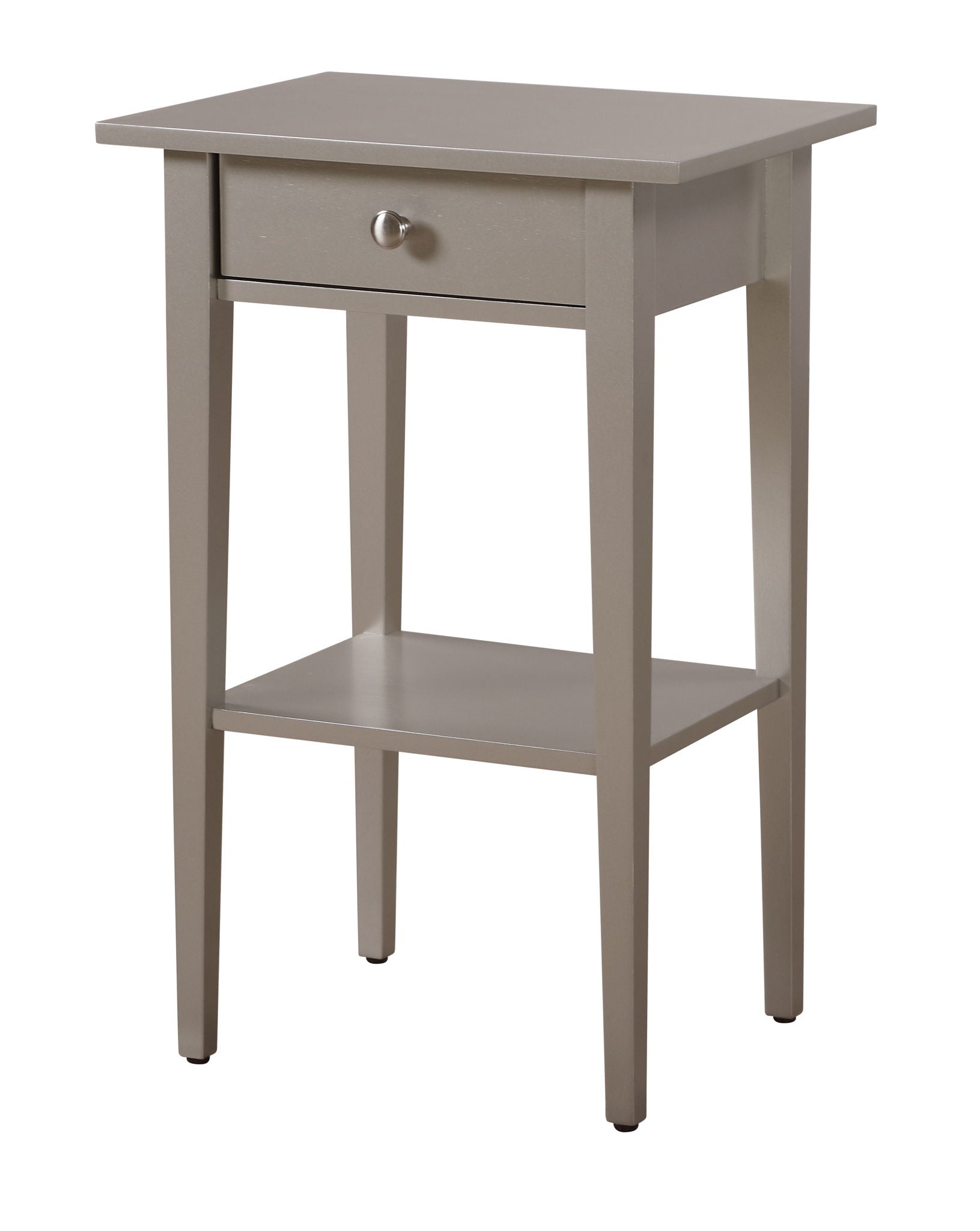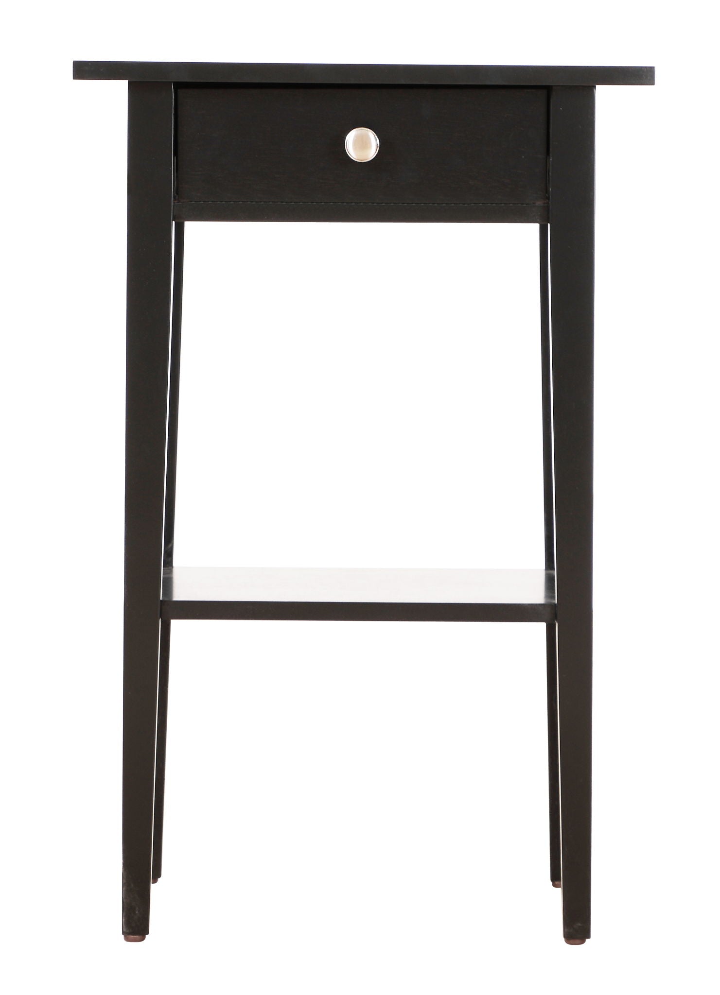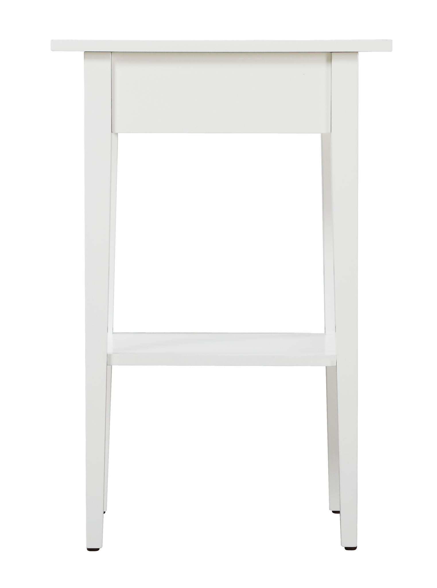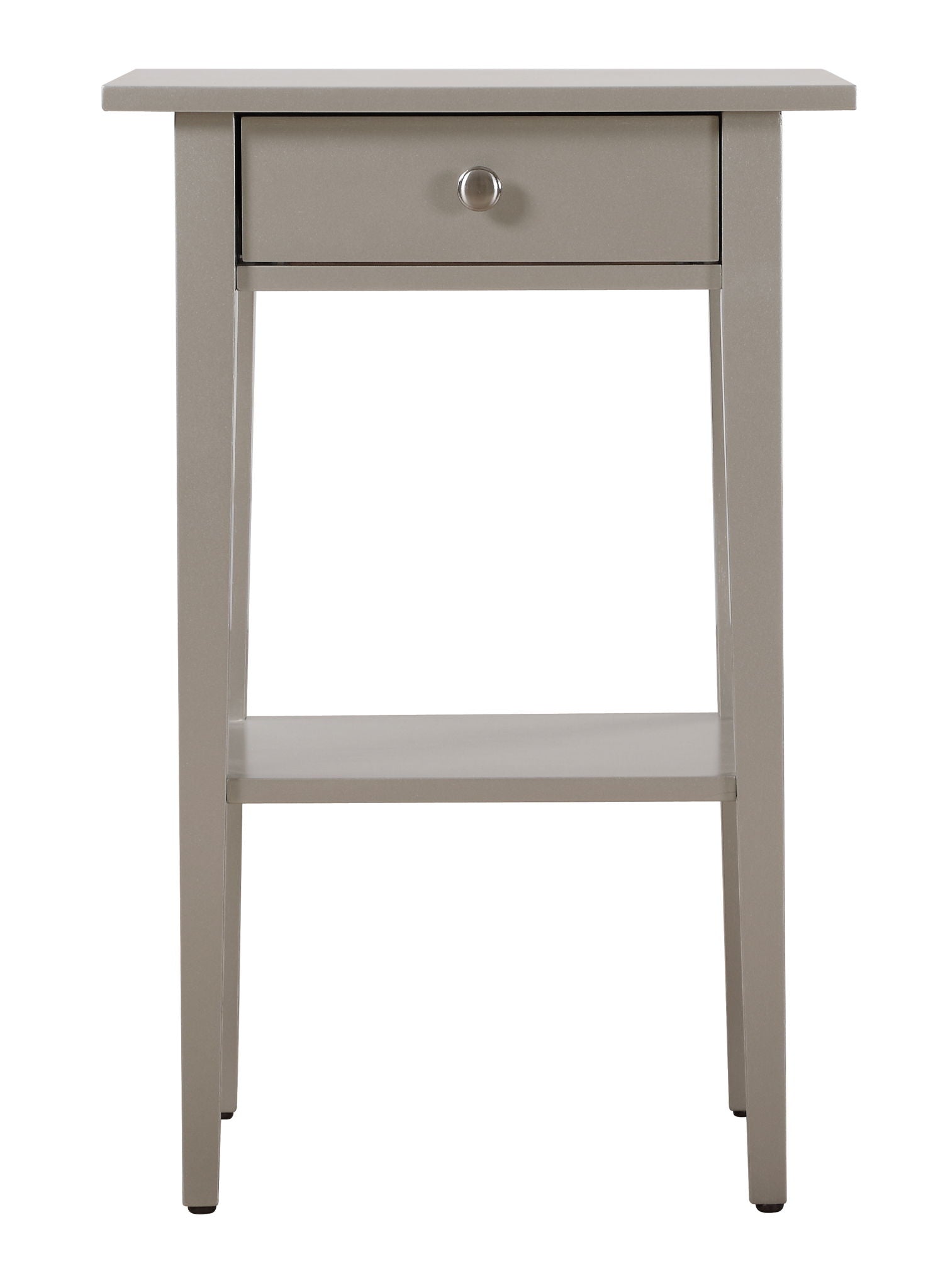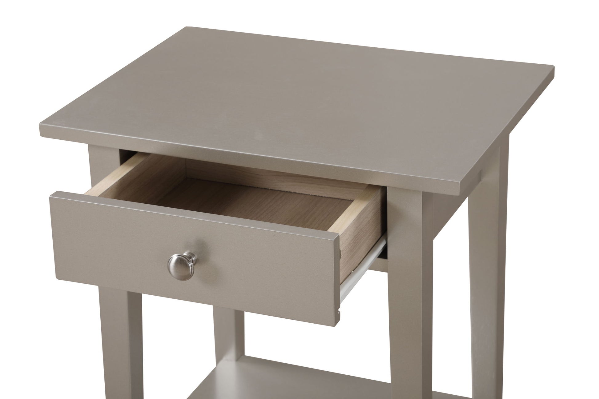 Outfitted with one spacious drawer, it allows for smooth access while ensuring your personal items stay concealed. The open shelf beneath grants additional flexibility for display purposes. The appealing nickel hardware contributes a touch of charm, making this nightstand not just functional but also an attractive element in any bedroom setup.