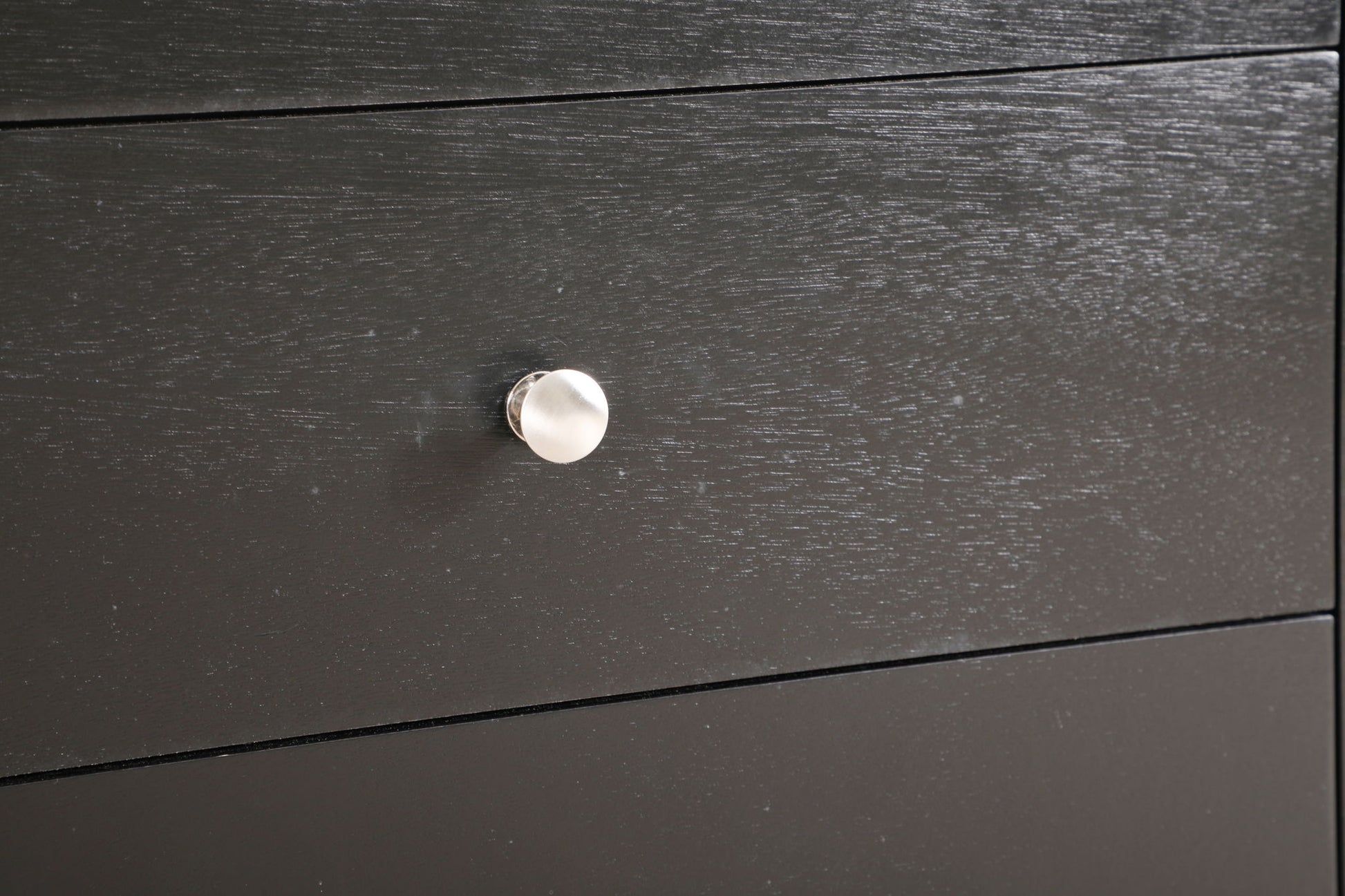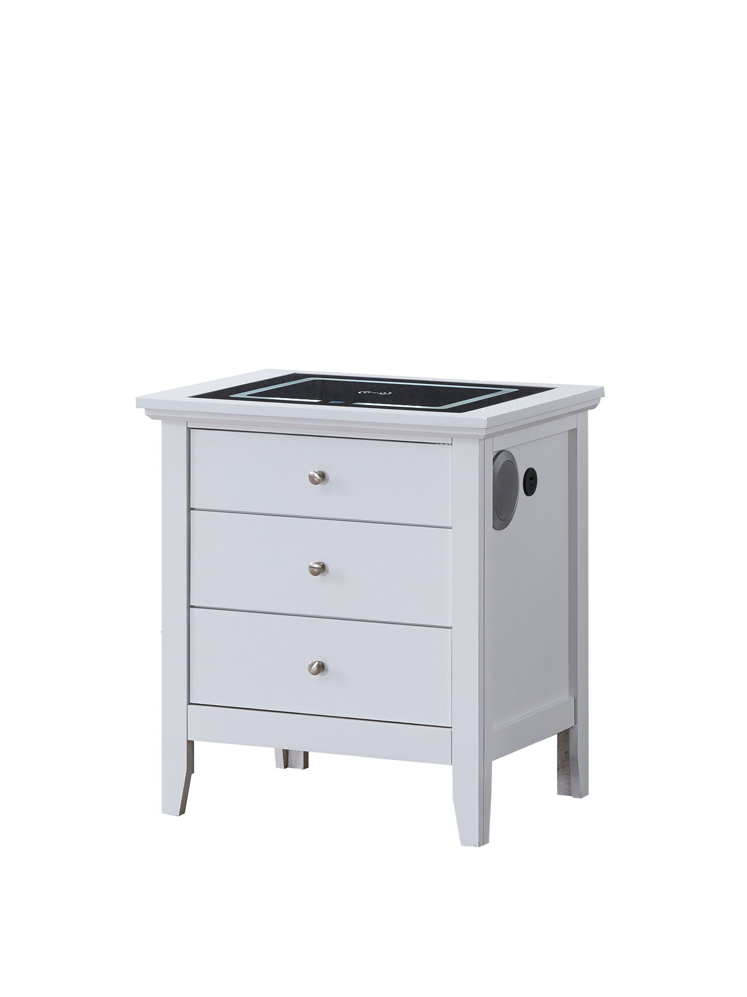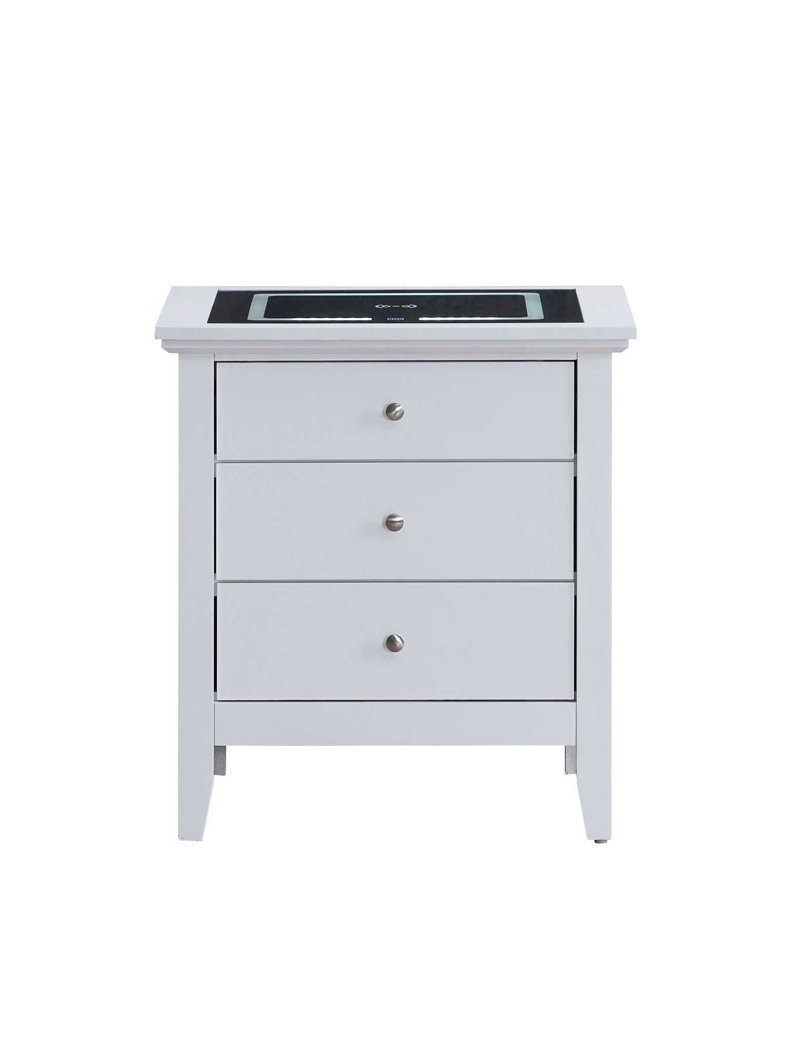 With dimensions of 26" in height, 24" in width, and 18" in depth, this piece fits perfectly in various spaces, making it a versatile choice for both small and large bedrooms. The dove-tailed construction of the drawers not only ensures durability but also allows for smooth operation. Additionally, the stylish nickel hardware complements the overall design, adding a touch of contemporary charm. In conclusion, this nightstand is not just functional but also a key piece that enhances the overall aesthetic of your living space.