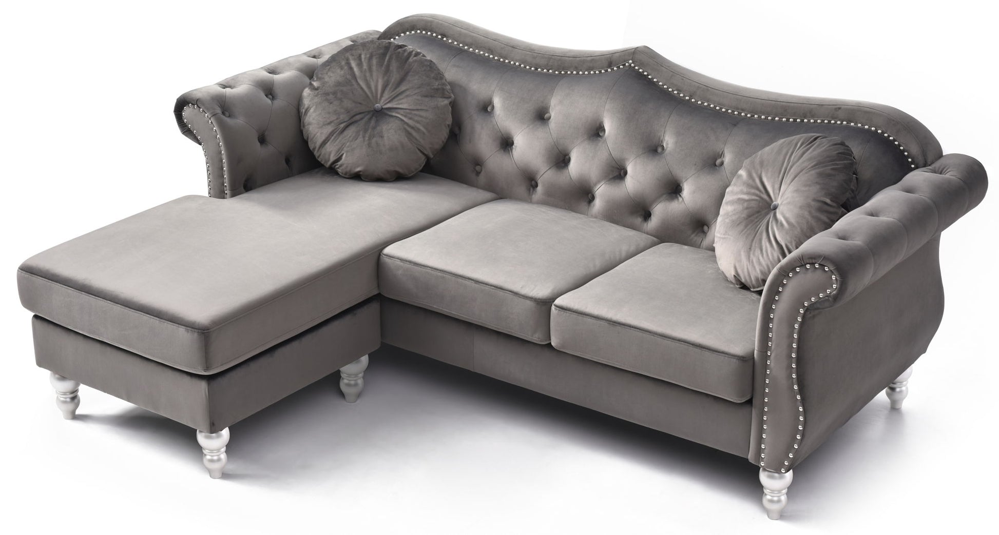 This sofa chaise unites comfort with contemporary design, making it a standout feature in your living space. Wrapped in soft velvet, it includes two matching throw pillows that enhance relaxation and offer extra support for your head and neck during leisure moments. With dimensions of 34"H x 81"W x 35"D, this chaise is adaptable to a variety of room sizes, from apartments to larger homes.