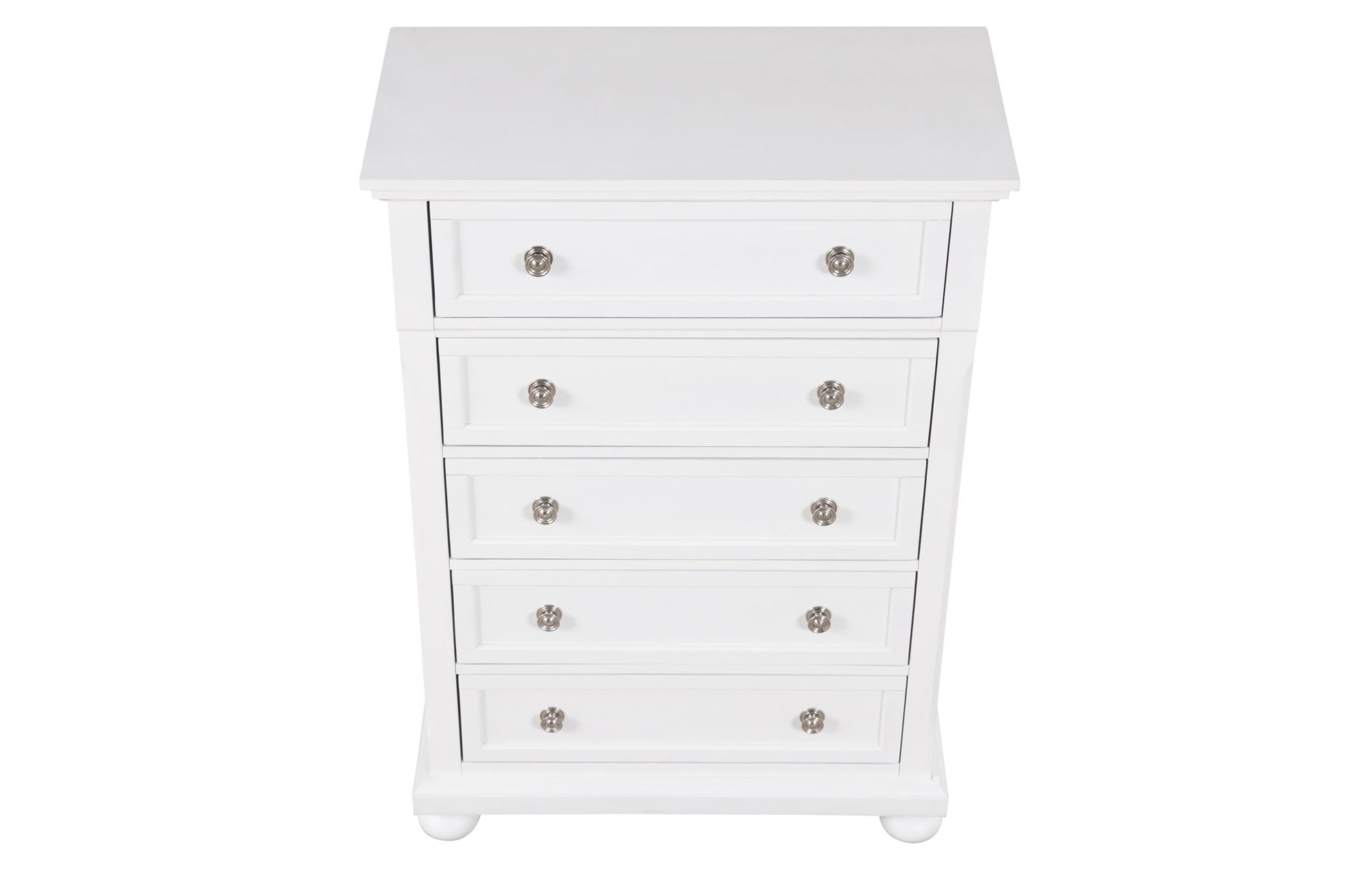 With overall dimensions of 53"H x 36"W x 18"D, it offers generous storage capabilities that are suited for organizing clothing, linens, and other household necessities. The full-extension drawers facilitate effortless access to your items, ensuring convenience during everyday use.