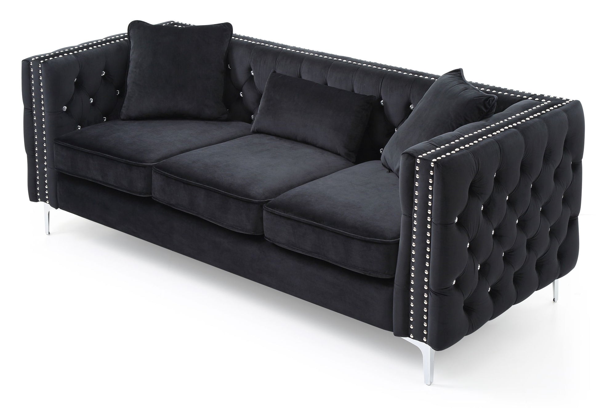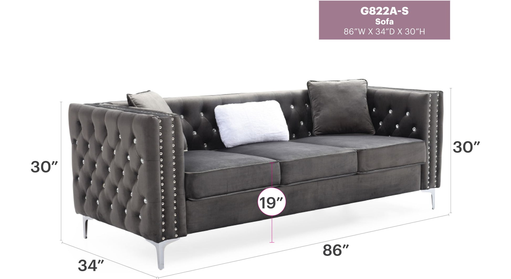 Made from high-quality velvet, this piece guarantees durability and comfort over time without compromising its visual appeal. The overall dimensions of 30"H x 86"W x 34"D make it an ideal choice for various room sizes, allowing you to maximize your space efficiently.