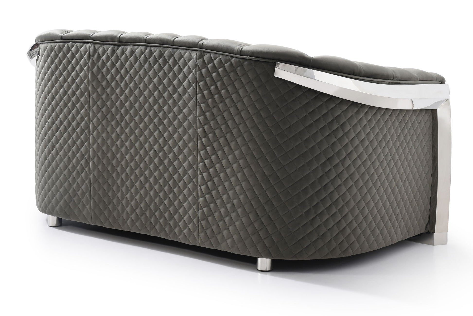 With overall dimensions of 34 inches high, 71 inches wide, and 37 inches deep, this loveseat provides generous seating while fitting seamlessly into various room layouts. The diamond quilted outside back and sides, paired with contrasting faux fur throw pillows, ensure that this piece will always remain a focal point. Finished with welted seam cushions, this contemporary loveseat not only looks good but is built to last, giving you plenty of enjoyable seating experiences for years to come.