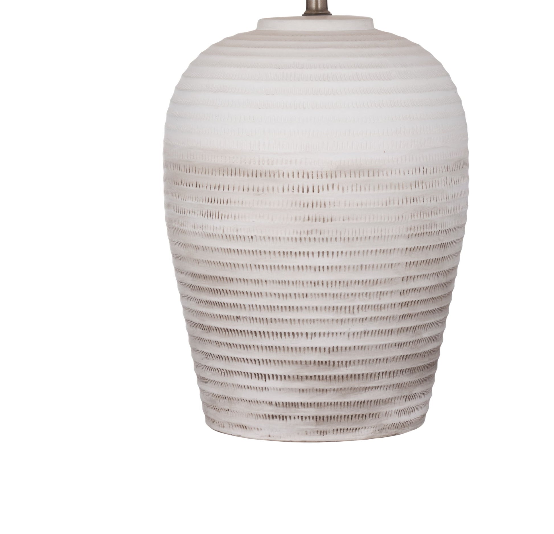 - Traditional ceramic lamp body featuring horizontal ribbing for texture and depth