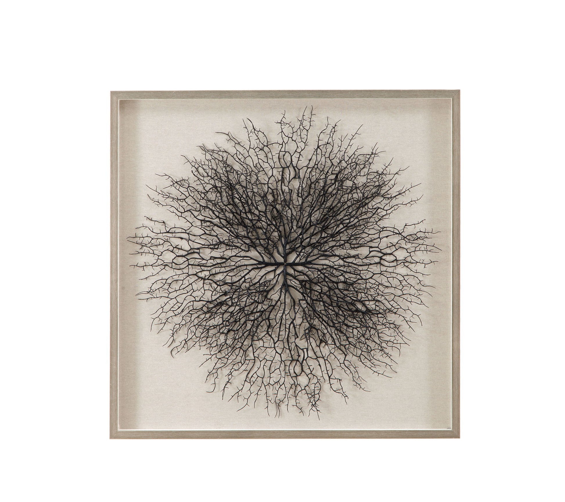 Gracee Wall Art is a shadow box accentuated with a neutral matboard and a sea fan with an accenting silver molding. D-ring or sawtooth picture hanging hardware included. Material: MDF, wood. This piece of art is hand painted by a skilled artist lending itself to a unique technique and will vary slightly. COO: China.