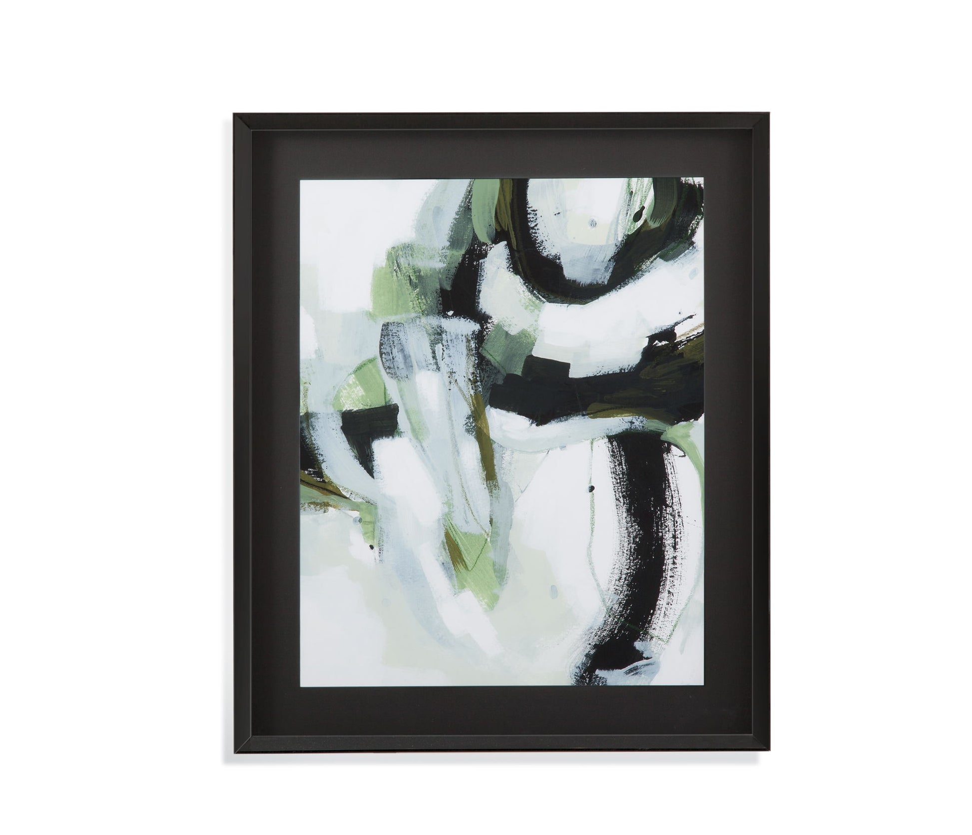 Green Onyx I features fine art cotton rag paper with a single black mat and a 3/4" high gloss black molding.