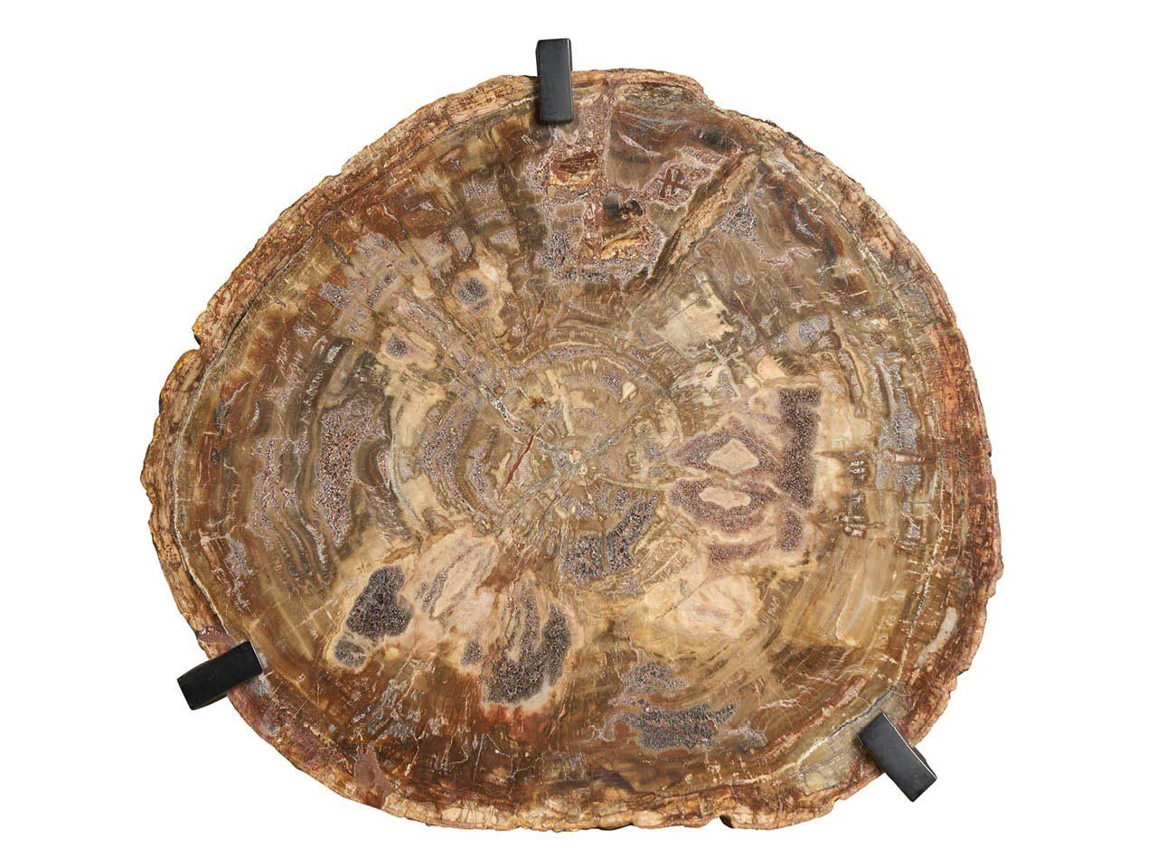The Griffith Park Bunching Tables are a captivating duo that combines the beauty of natural stone with the strength of metal. The petrified wood stone tops, with their unique textures and colors, contrast dramatically with the sturdy cast iron bases. This dynamic pairing creates a striking visual statement, perfect for any living room or entryway.