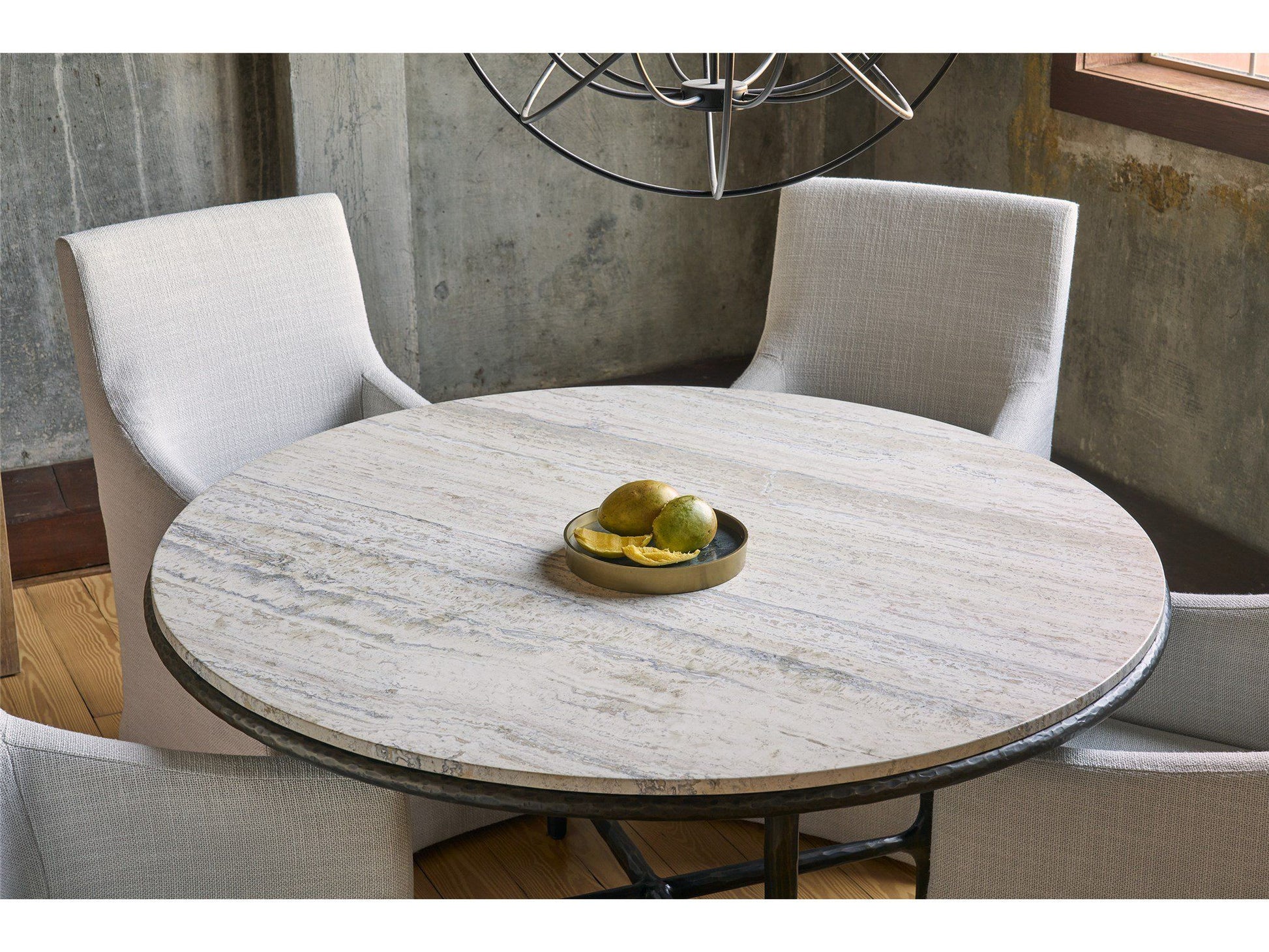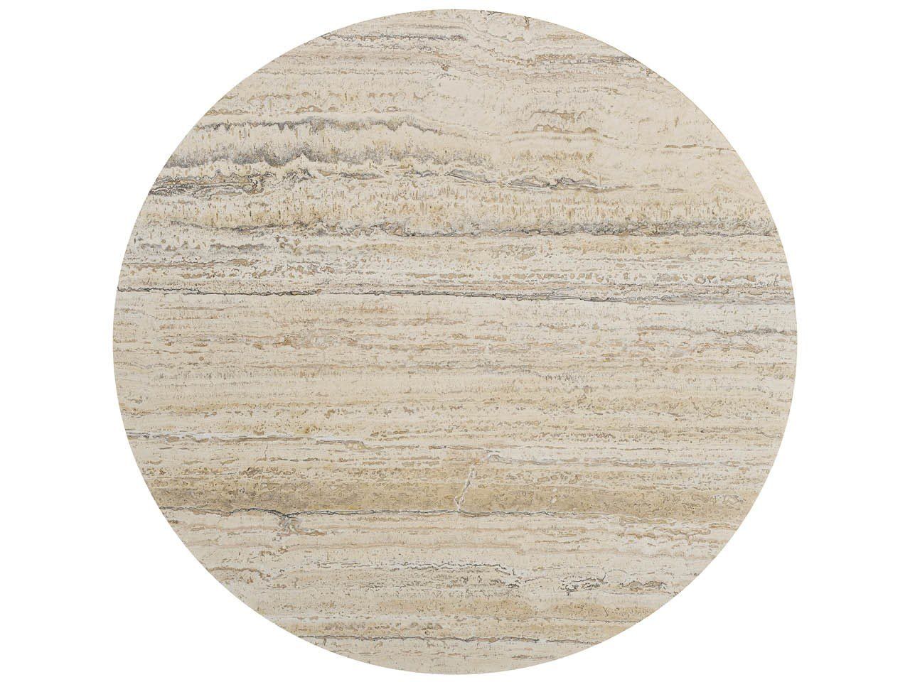 The Griffith Park Round Dining Table is a captivating blend of modern elegance and natural beauty. Its sleek metal base and smooth white travertine top create a striking contrast, while the X-shaped design adds a touch of architectural interest.