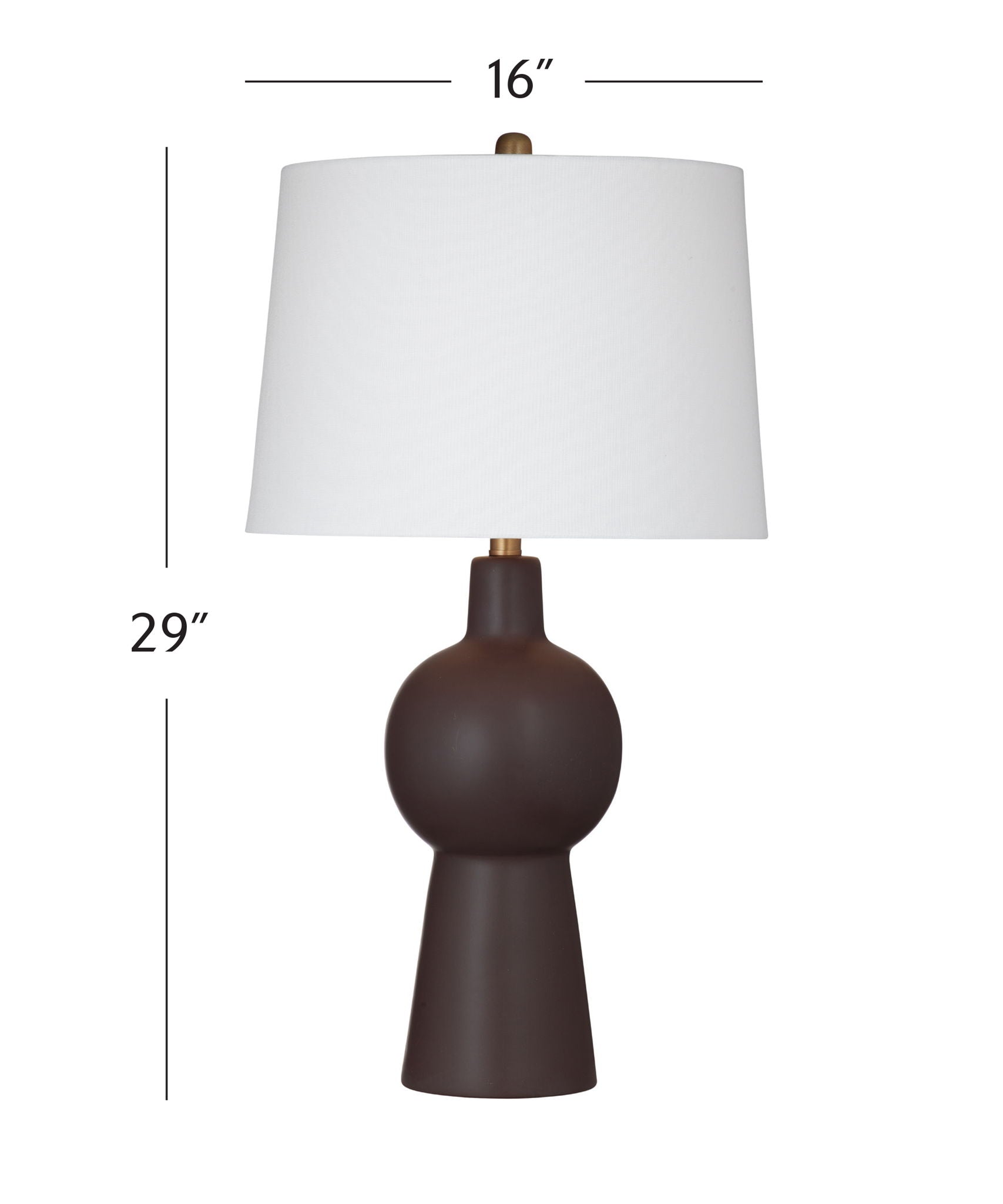 The Groton Table Lamp brings a touch of modern elegance with its uniquely designed base in a rich, warm brown finish. Topped with a crisp, tapered white drum shade, this lamp effortlessly combines classic elements with contemporary style. Brass accents add a luxurious flair, elevating its sophisticated appeal. Perfect for any room, the Groton Table Lamp delivers both warmth and refinement, making it a stunning addition to your home decor.