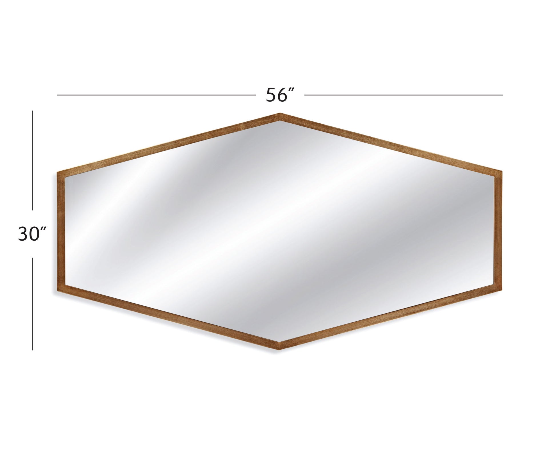 The Haines Wall Mirror features a modern design and luxurious gold leaf finish, this hexagonal piece adds a touch of sophistication to any space. Crafted with attention to detail, it effortlessly combines elegance with simplicity, making it a timeless addition to your decor. Elevate your space with the modern and refined allure of this stunning piece.