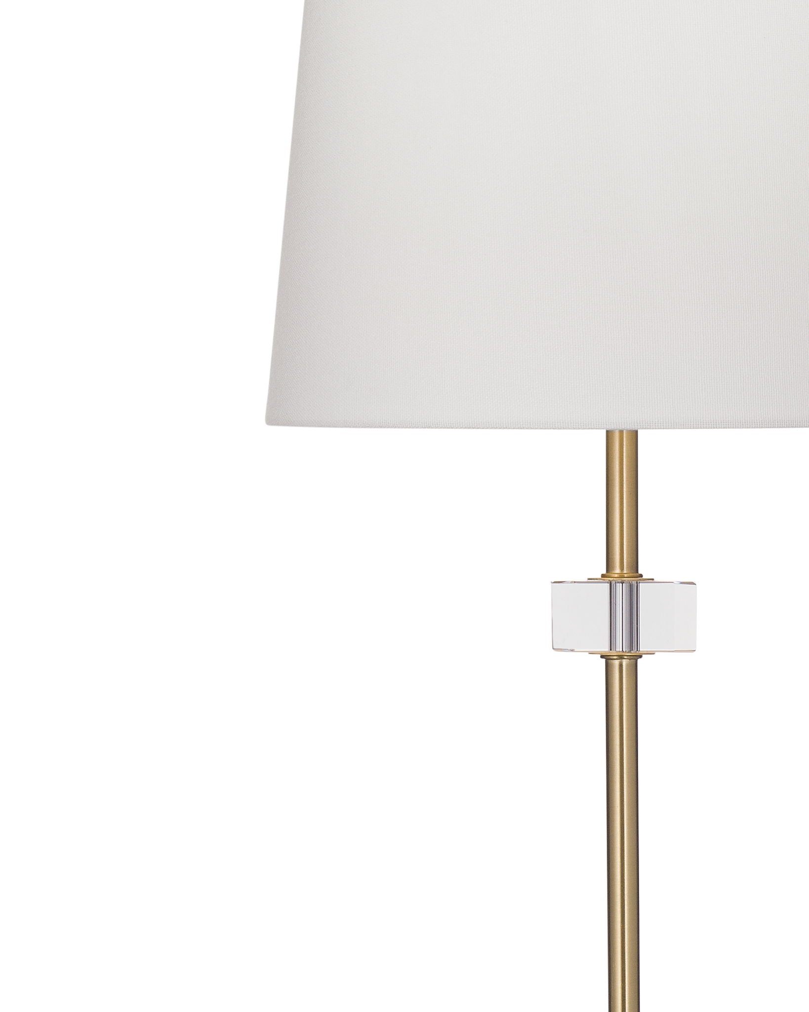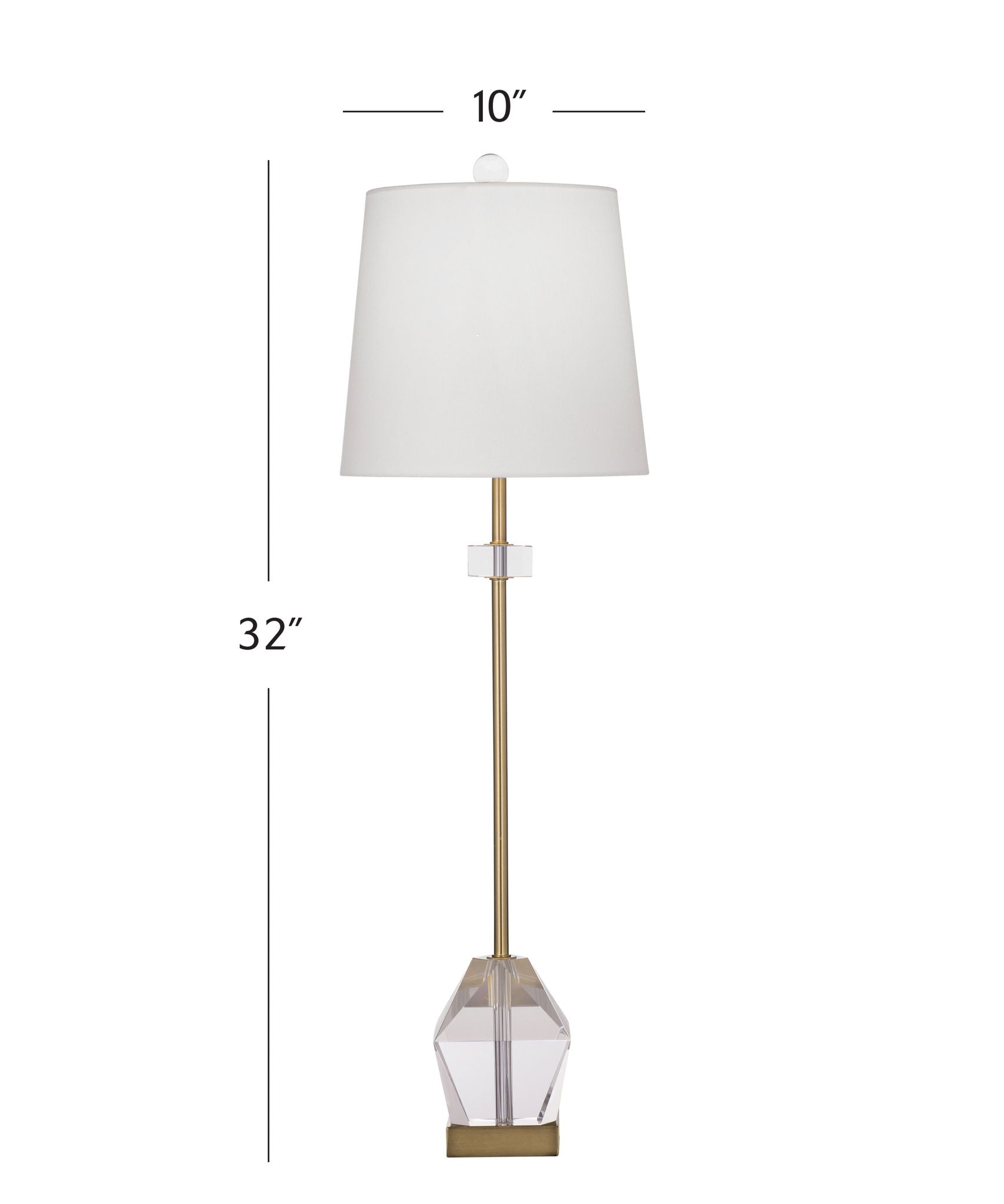 The Hampton Table Lamp embodies timeless sophistication, meticulously crafted from crystal and adorned with an antique gold finish, showcasing a marriage of elegance and refinement. The exquisite crystal base adds a touch of opulence, catching and refracting light in a captivating display. Topped with a gracefully tapered white shade, the lamp exudes a soft and ambient glow, making it a perfect addition to any interior seeking a harmonious blend of classic allure and contemporary charm. The antique gold finish further enhances its visual appeal, contributing to a luxurious and stylish presence. The Hampton Table Lamp stands as a statement piece, seamlessly combining quality craftsmanship, radiant crystal, and a tasteful color palette to elevate the ambiance of any space it graces.