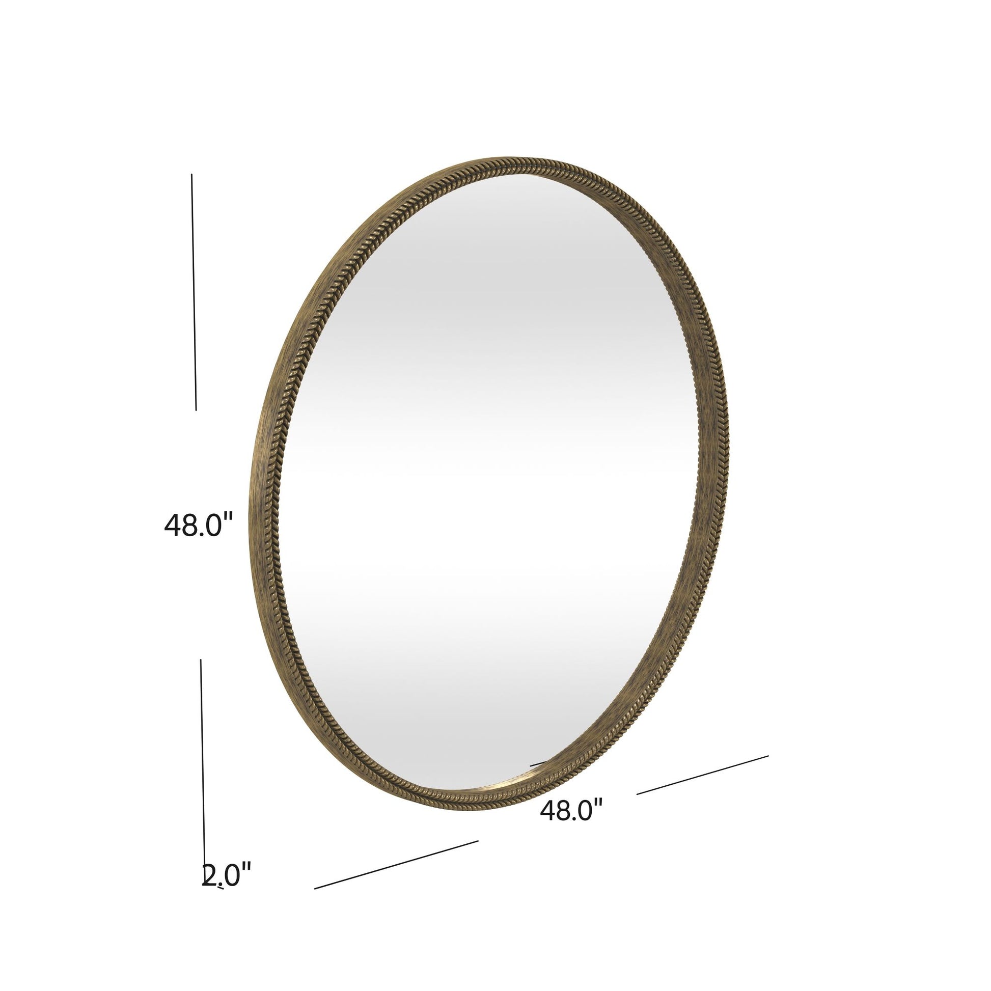 The Hawthorne Wall Mirror exudes simplicity and sophistication with its circular frame and timeless bronze texture, adding a touch of elegance to any space. Its thin bronze frame boasts a traditional style, enhancing the beauty of this 48-inch round mirror as a stunning wall feature for any room in your home. Crafted with attention to detail, it effortlessly combines modern design with timeless allure.