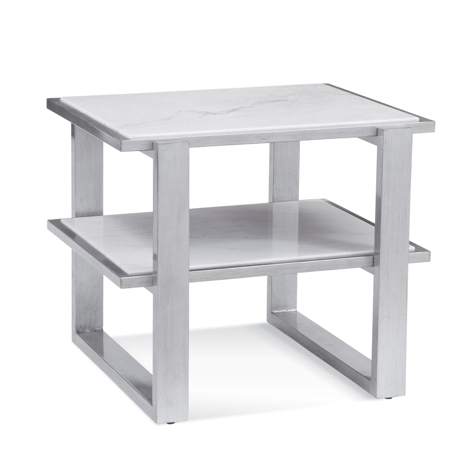 - Geometric, clean lines and light cool finishes give the Hessle End Table a clean, contemporary style