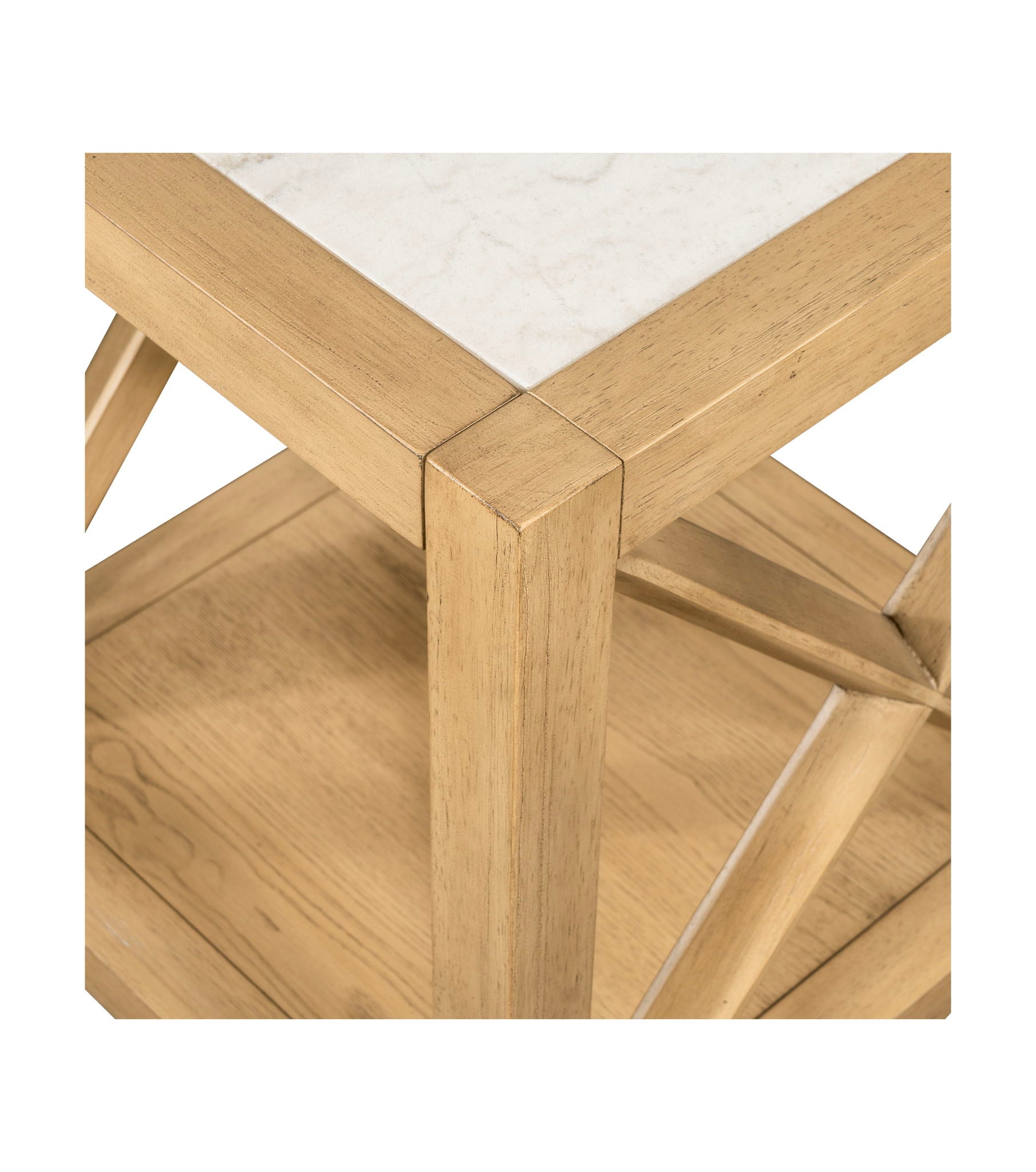 The Holden Square Coffee Table effortlessly combines modern sophistication with traditional craftsmanship. Crafted from solid wood and oak veneers in a warm sunlit oak finish, it exudes elegance and timeless appeal. The inset white Carrara marble veneer top adds an elevated touch, bringing both style and luxury to your living space. The open design with bold X-shaped end panels creates a visually dynamic look, while its clean lines ensure versatility in any room. Equipped with casters for easy mobility, this coffee table blends style, function, and sophistication seamlessly.