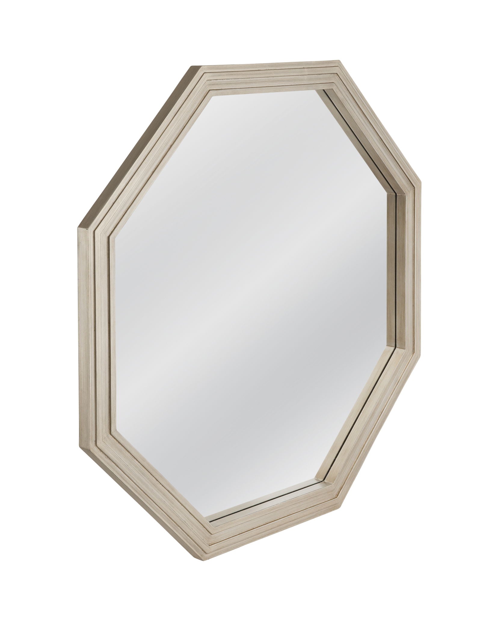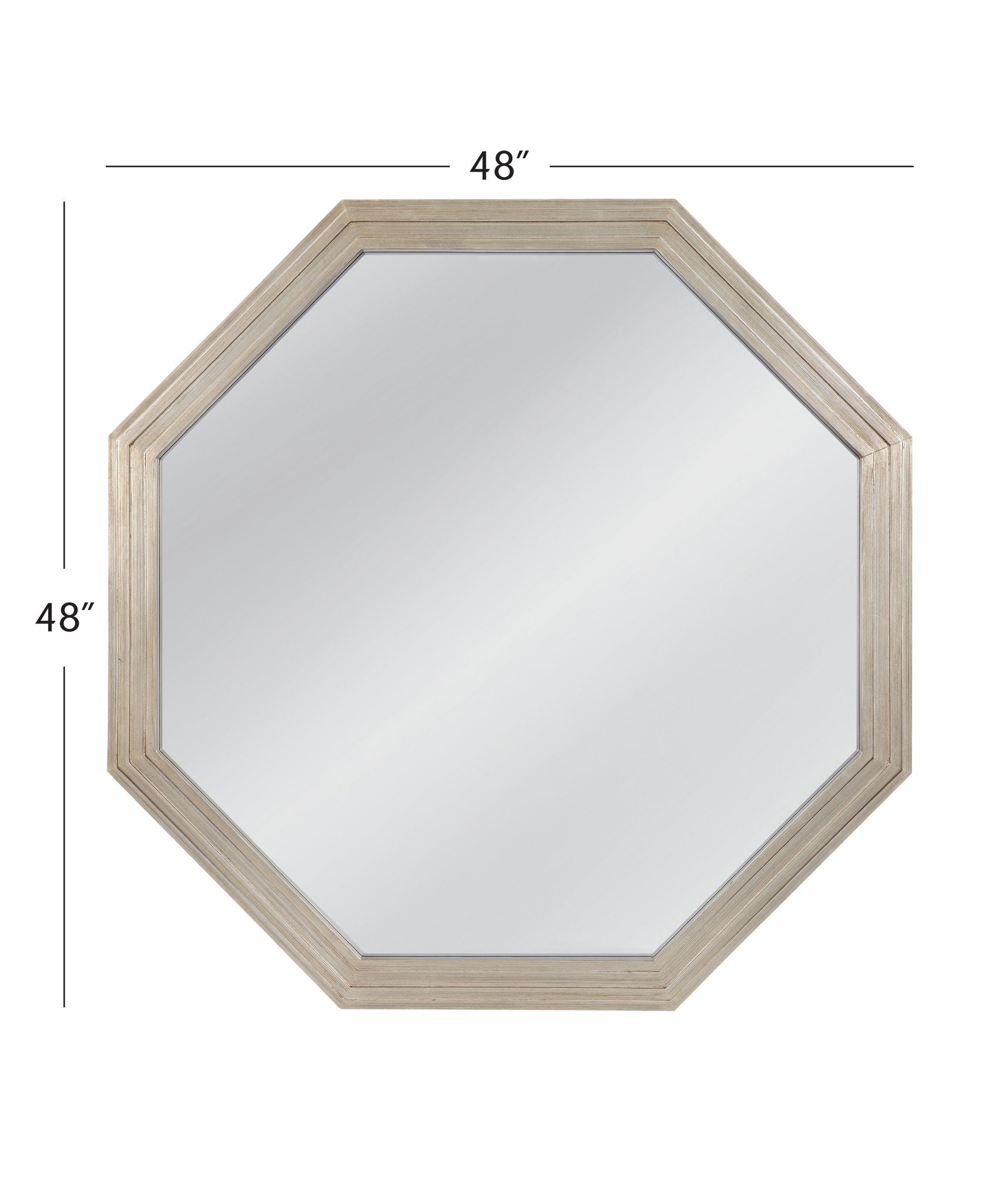 The Holiday Wall Mirror boasts an octagonal frame, bringing a modern touch to any room. Its sleek silver finish adds a contemporary flair to your decor. Perfect for adding a stylish statement to your space.